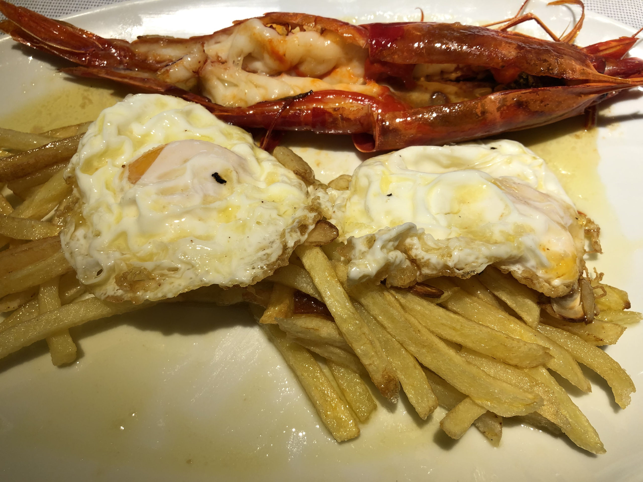 Uno de los mejores platos que se sirven en El Gran Barril es el carabinero con patatas y huevos fritos. Con un marisco de gran tamaño y con el increíble sabor que tiene tanto su cabeza como la cola y que acompaña a la perfección con unas patatas fritas muy bien hechas y dos huevos fritos. Un plato redondo que merece mucho la pena.