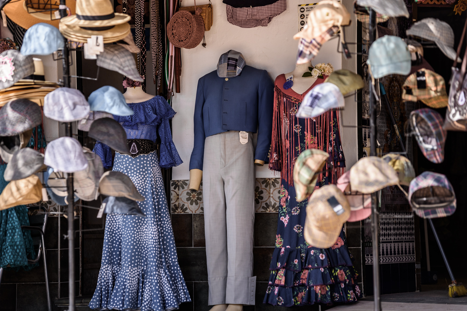 Dando un paseo por la aldea de El Rocío, hay varias cosas que llaman la atención, como las sedes de las hermandades y que las calles están cubiertas de albero (tierra con la que se cubren los ruedos de las plazas de toros), o la presencia de muchas tiendas donde comprar el típico traje de gitana.