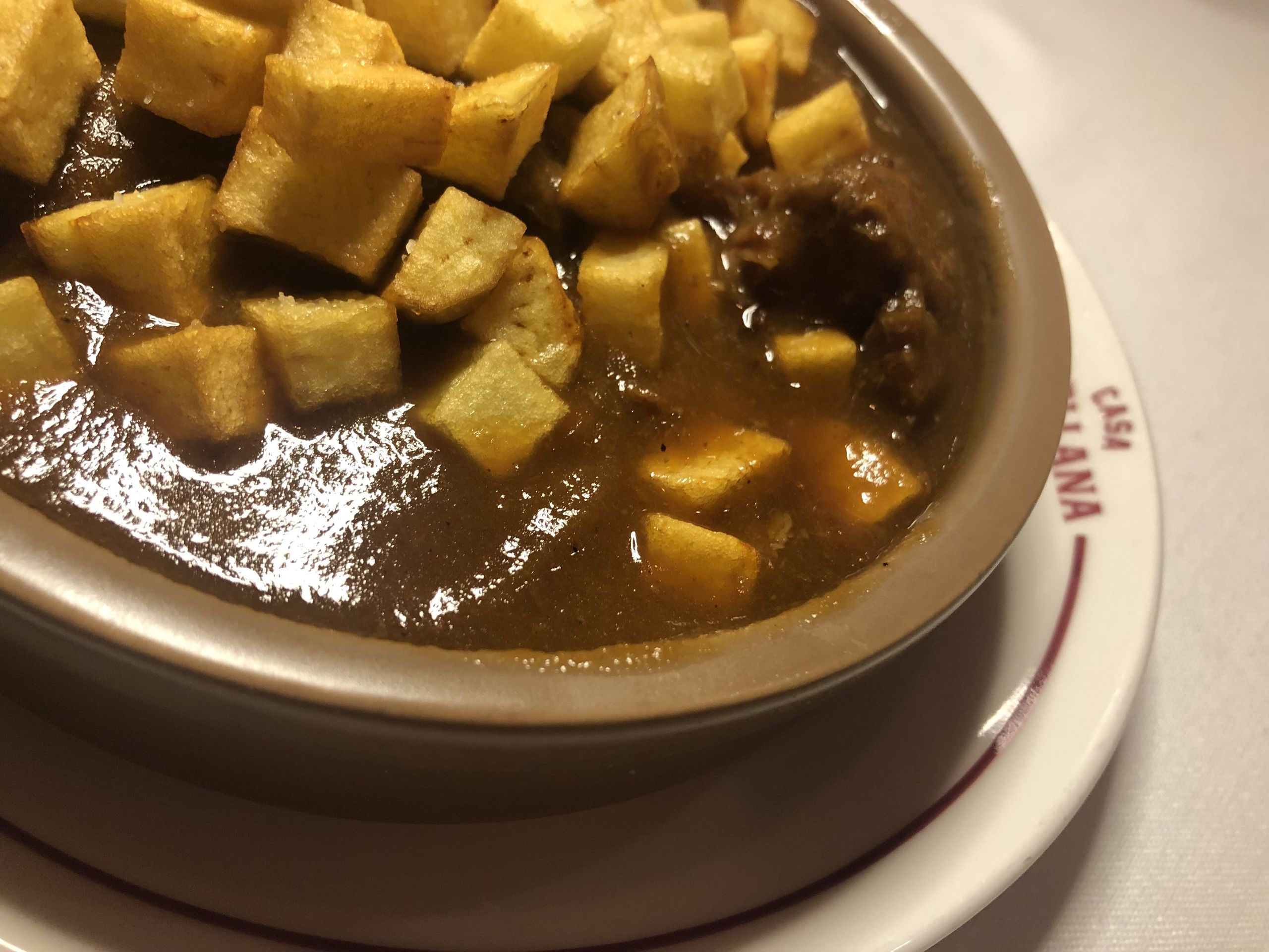 La buena materia prima la puedes comprobar también en un muy rico steak tartar con chips de tupinambo (20€). Acuérdate de pedir al camarero el toque de picante para que lo preparen a tu gusto. Y si eres de guisos y platos de cuchara, tienes desde unas lentejas con chistorra de Navarra a unas espectaculares carrilleras ibéricas al palo cortado Don Zoilo (M. 13€, E. 19,5€). Para los dulzones, la opción es escasa pero la torrija con helado de turrón (9€) merece que la probéis.