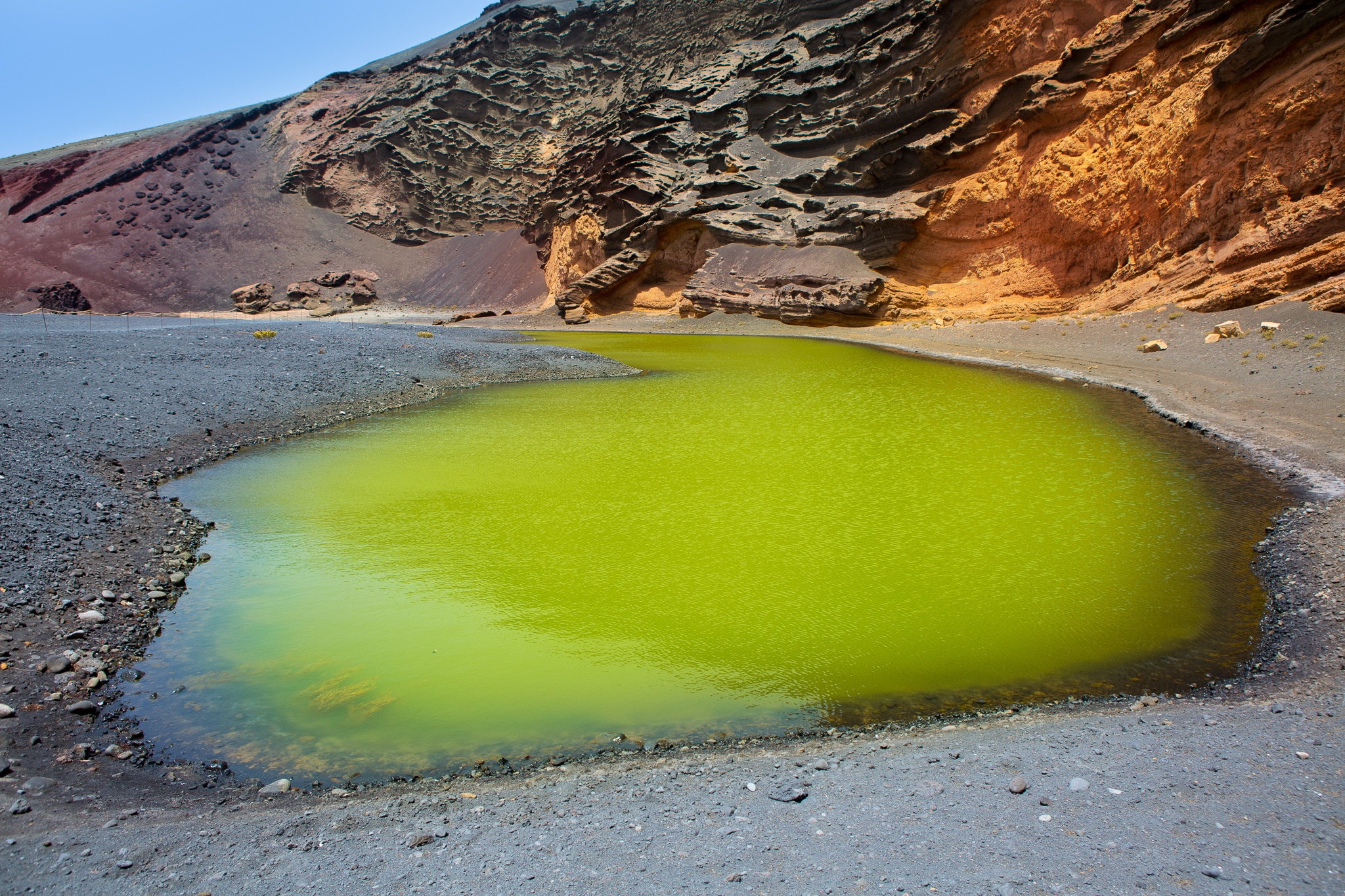 Contrastan el color negro de la arena volcánica, el azul del Océano y el color verde de la laguna, efecto producido por la presencia de algas ruppia marítima. Sin duda uno de los rincones para no perderser en Lanzarote.
