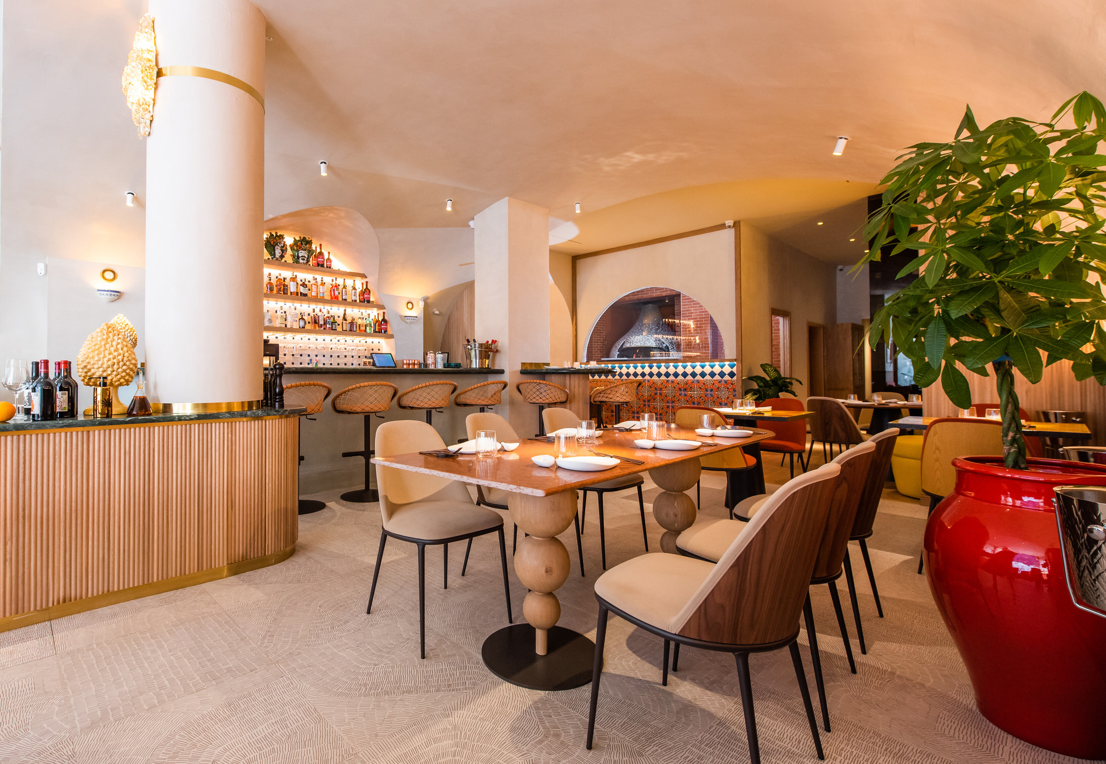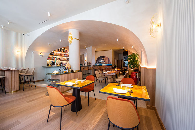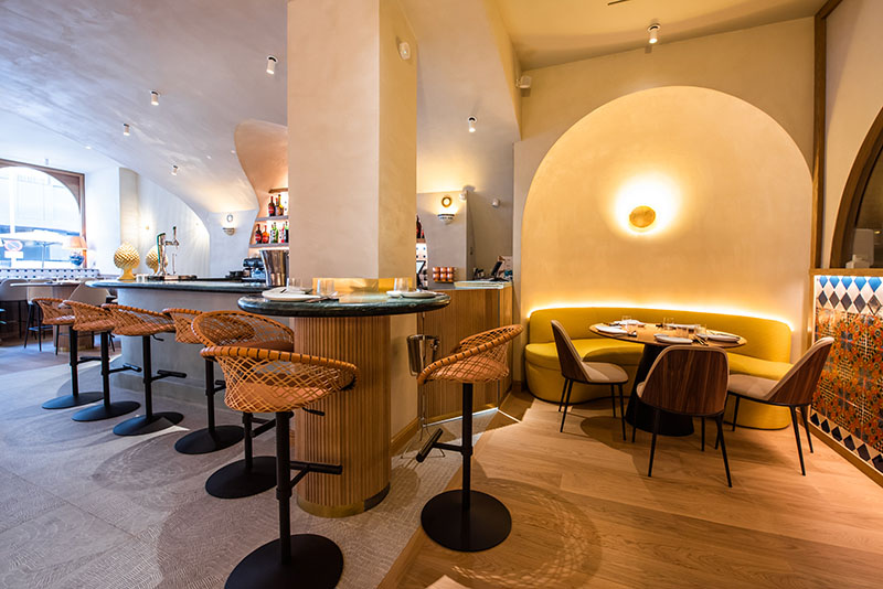 Vista general del restaurante con su bóveda y con los detalles del diseño llevado a cabo por Cousi Interiorismo.
