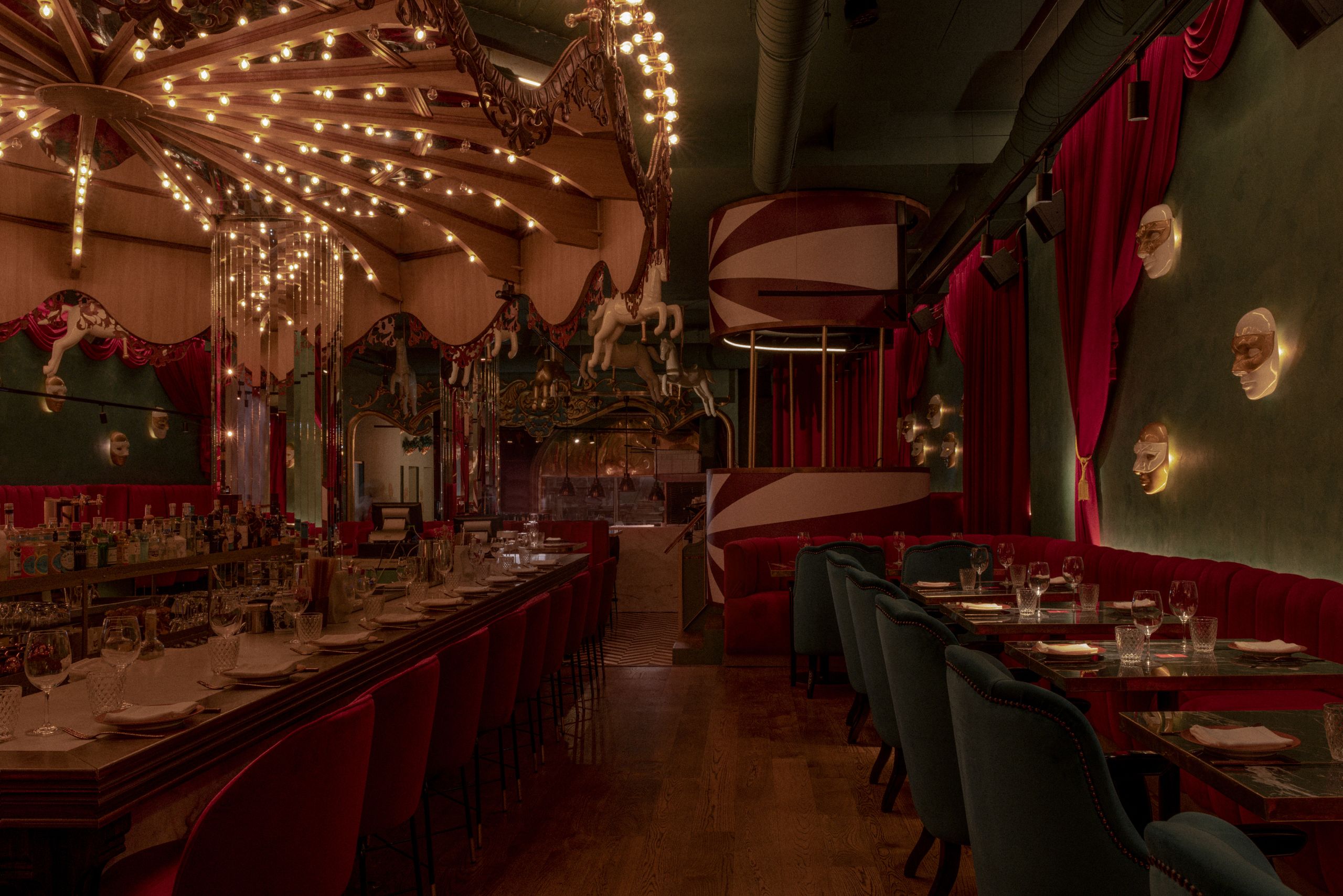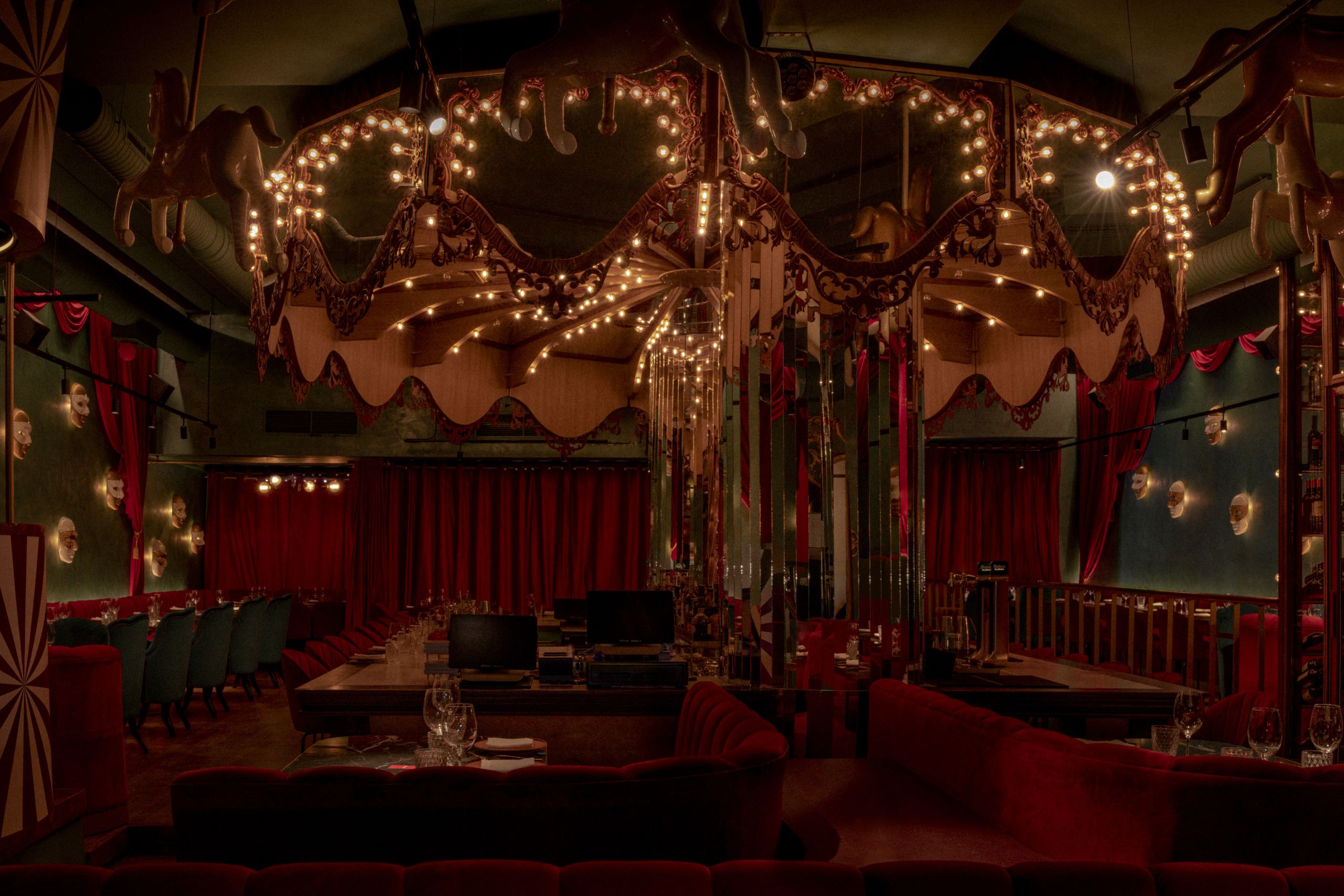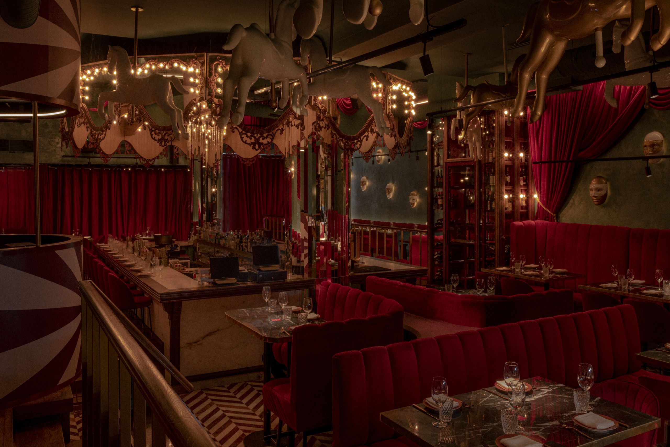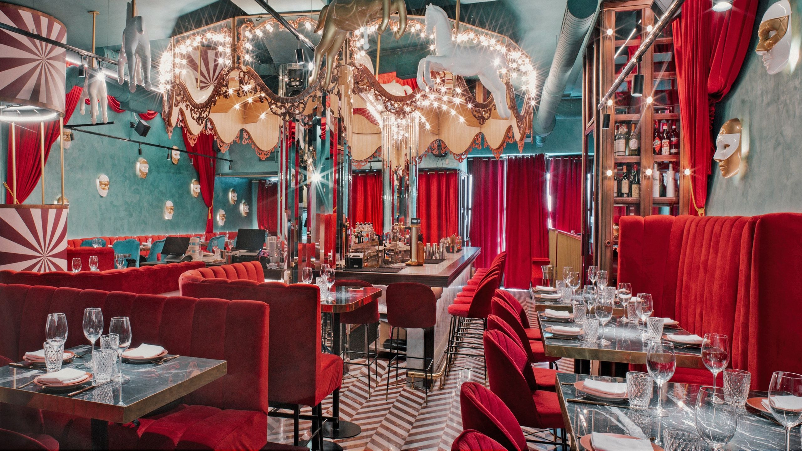 Diseñado por Il Mio Design, representa un circo vintage de espejo, terciopelo y colores vivos idóneos para instagramers.