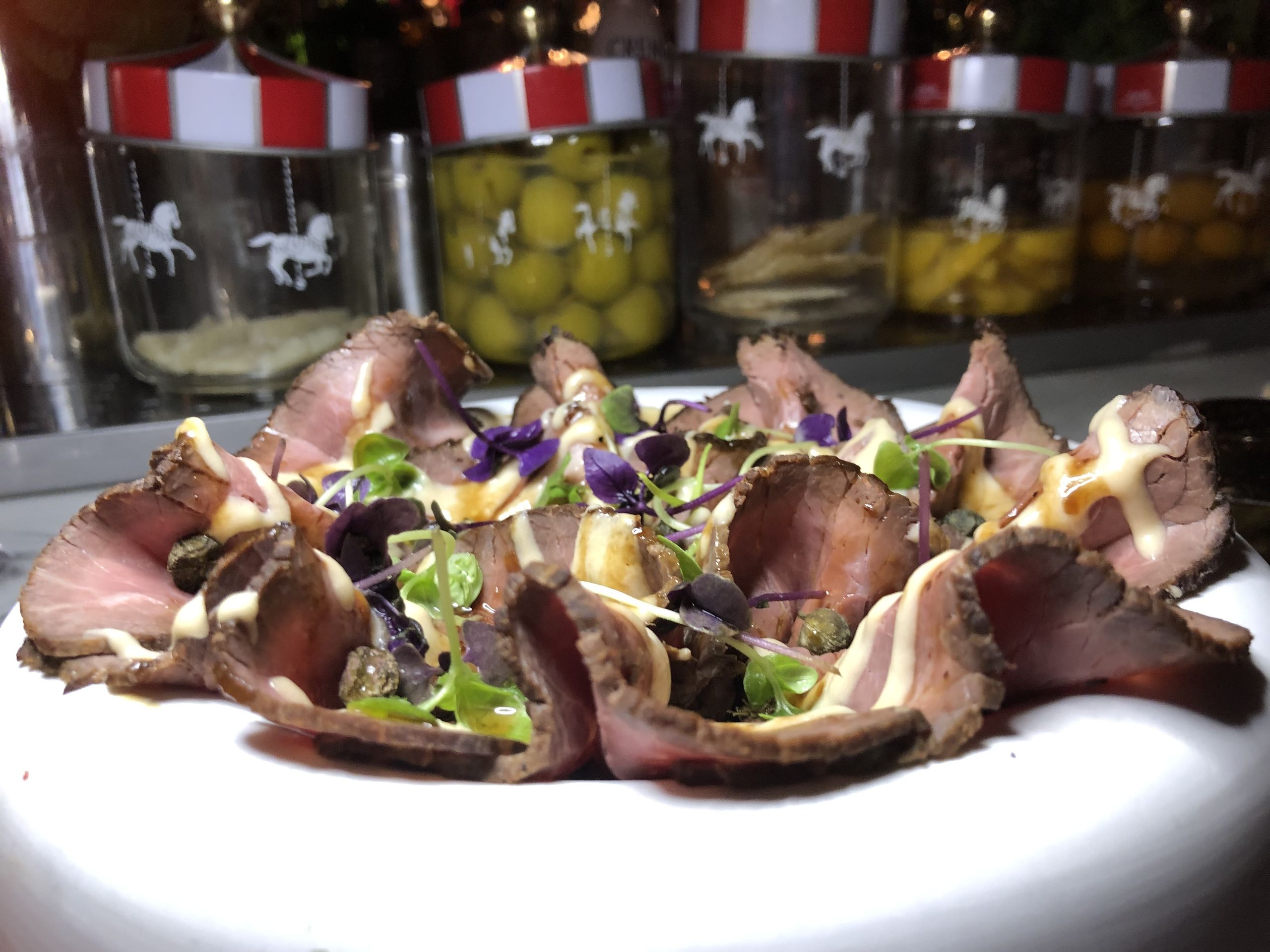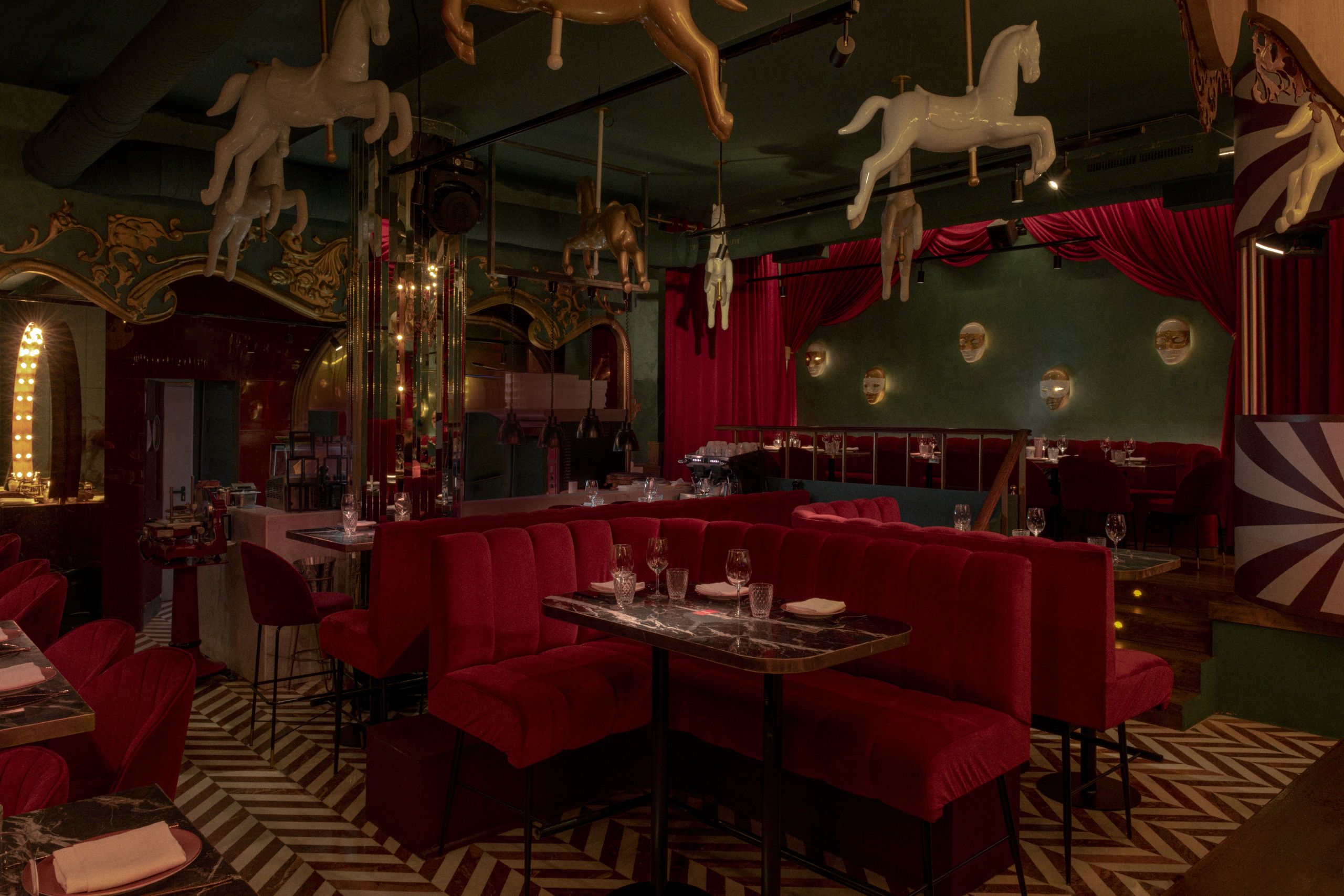Los caballitos de tiovivo también están presentes en el comedor de Arrogante para goce de los clientes.