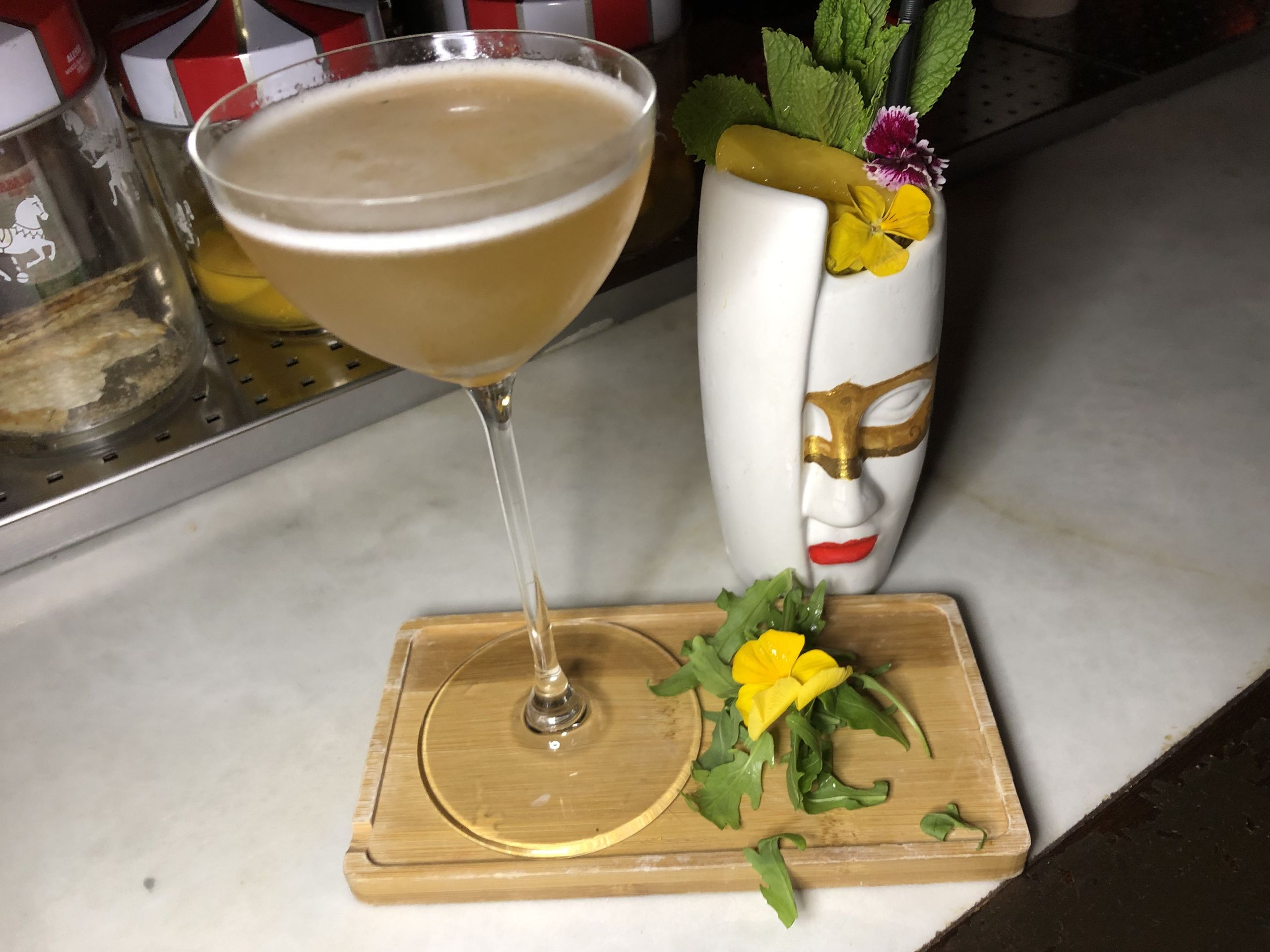 La propuesta de Arrogante cuenta con una más que interesante coctelería inspirada en la italianidad en la que el head bartender del grupo SLVJ, Borja Goikoetxea, ha incluido 18 cócteles de creación, dos de ellos sin alcohol, y propuestas más clásicas. En la foto los cócteles Eccolo y Bellini Arrogante.