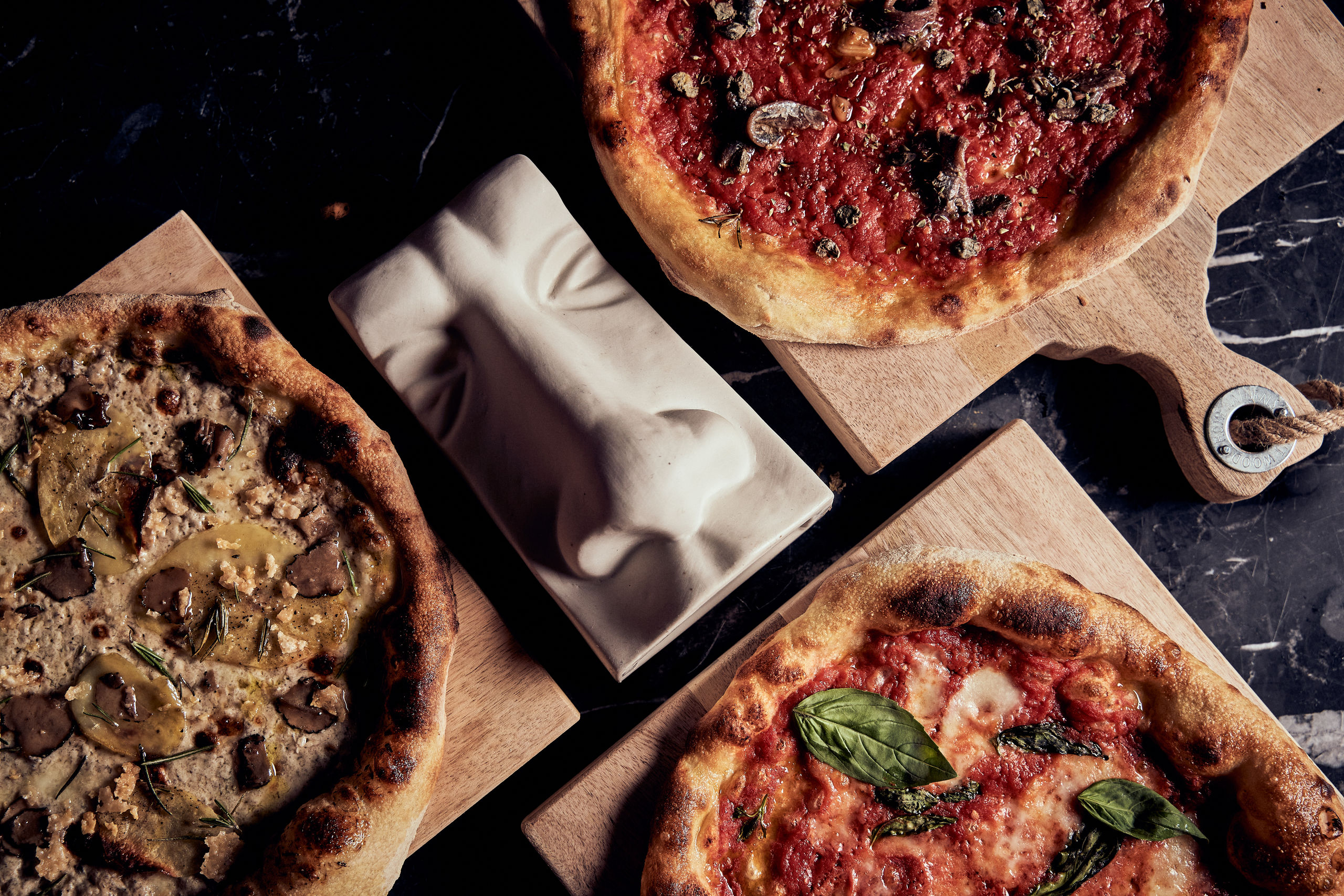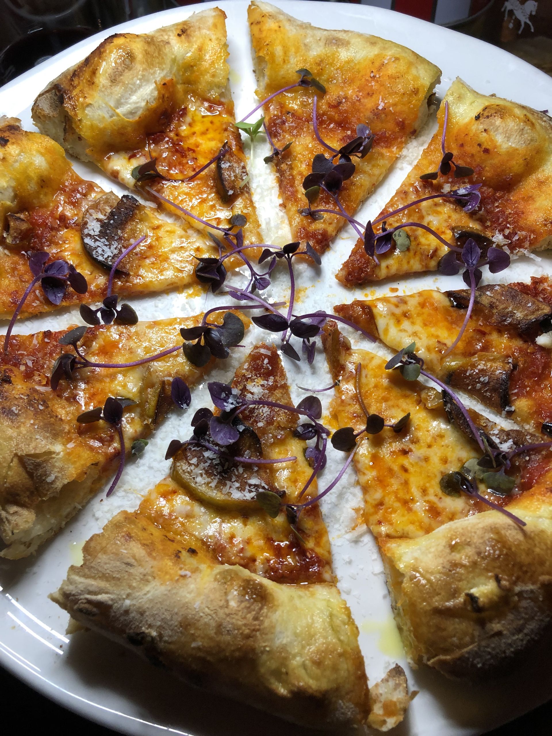 Pizza Arrosto, sobrasada picante, mozzarella y manzana rostizada.