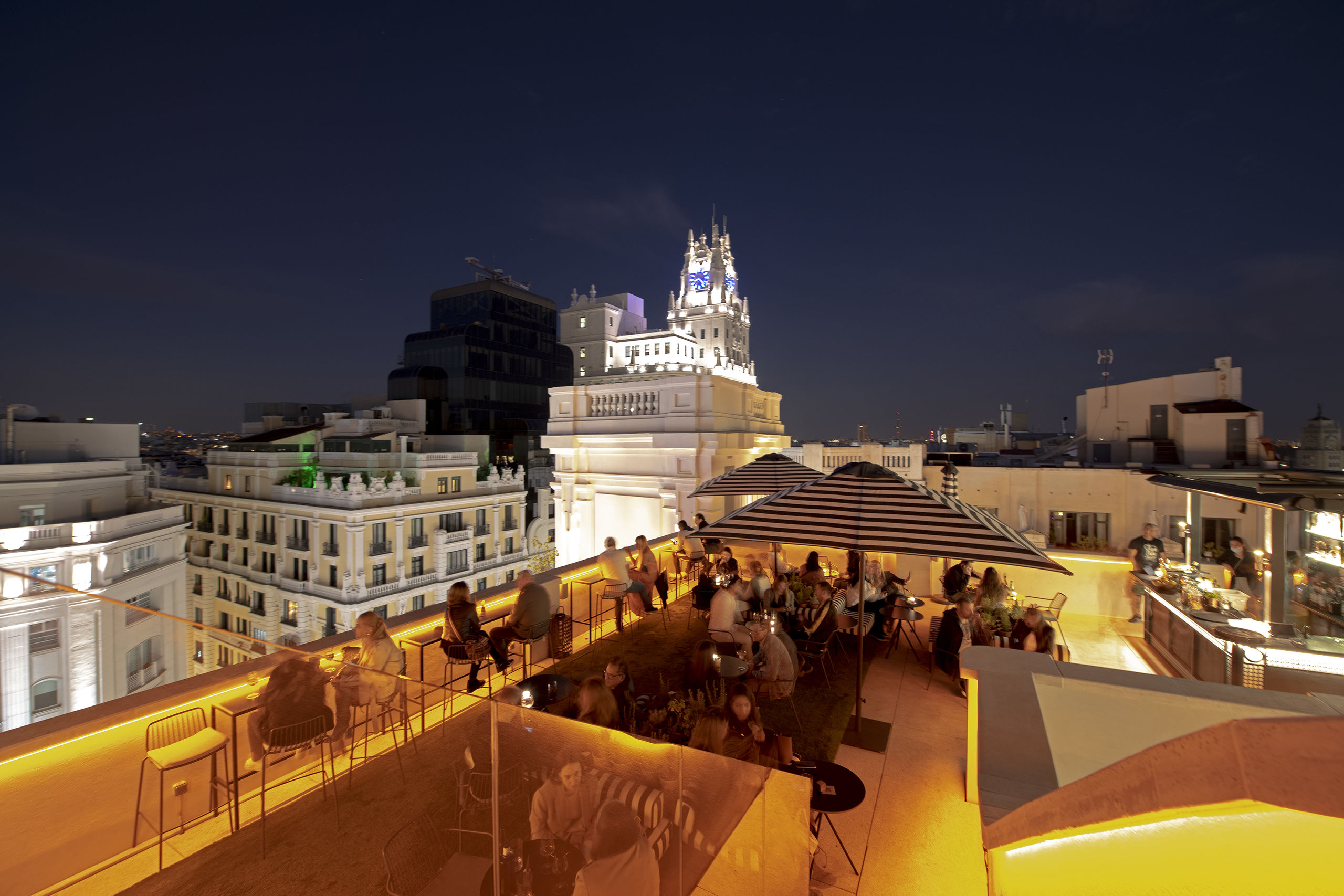 El centro de Madrid comienza a tomar el pulso al verano con sus terrazas con espectaculares vistas al skyline de la capital.