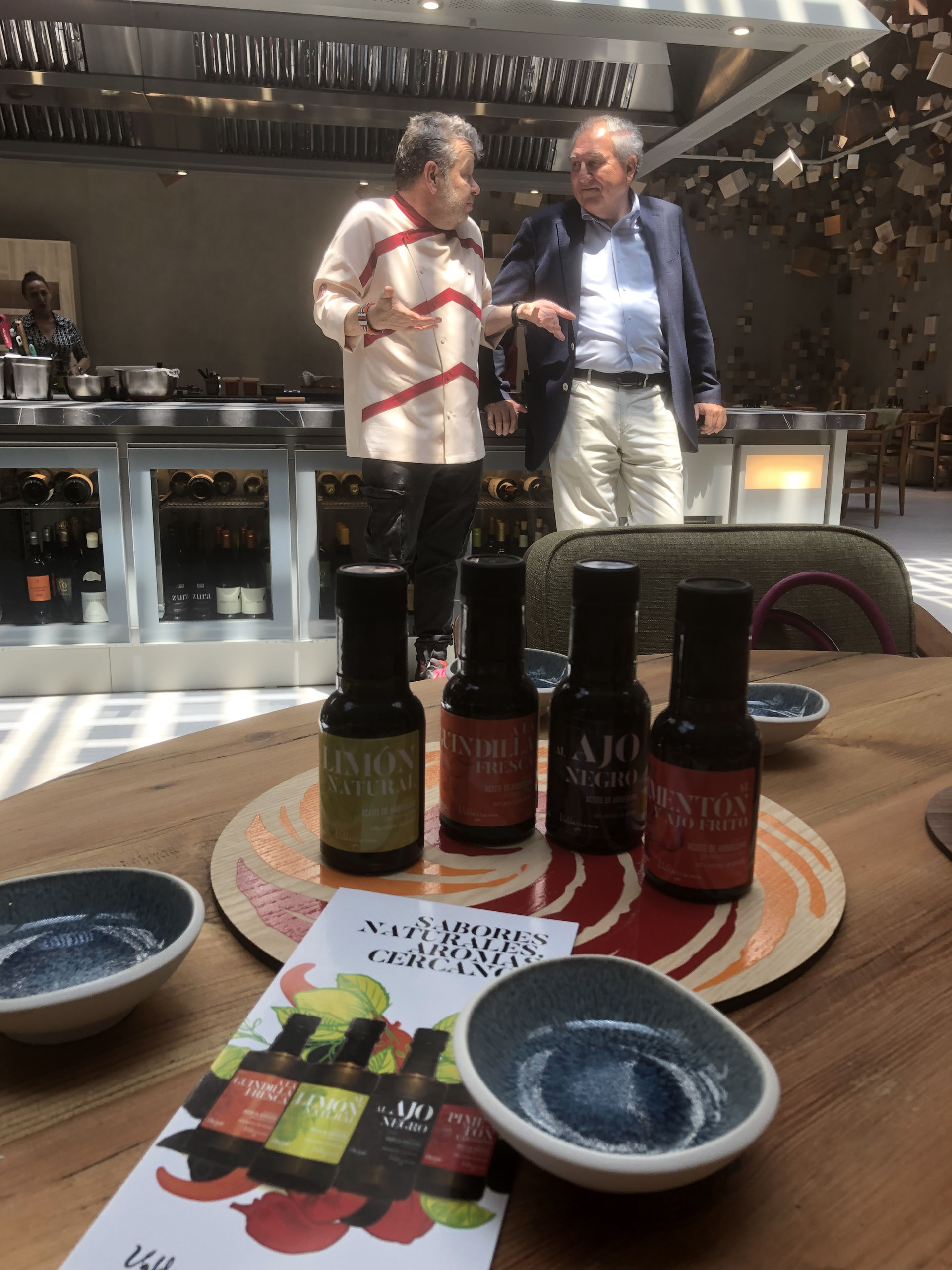 El chef Alberto Chicote ha sido el encargado de apadrinar los cuatro nuevos condimentos de Aceites Valderrama en su nuevo restaurante, aún sin inaugurar, Omeraki, con un completo menú en el que los aceites eran los claros protagonistas.
