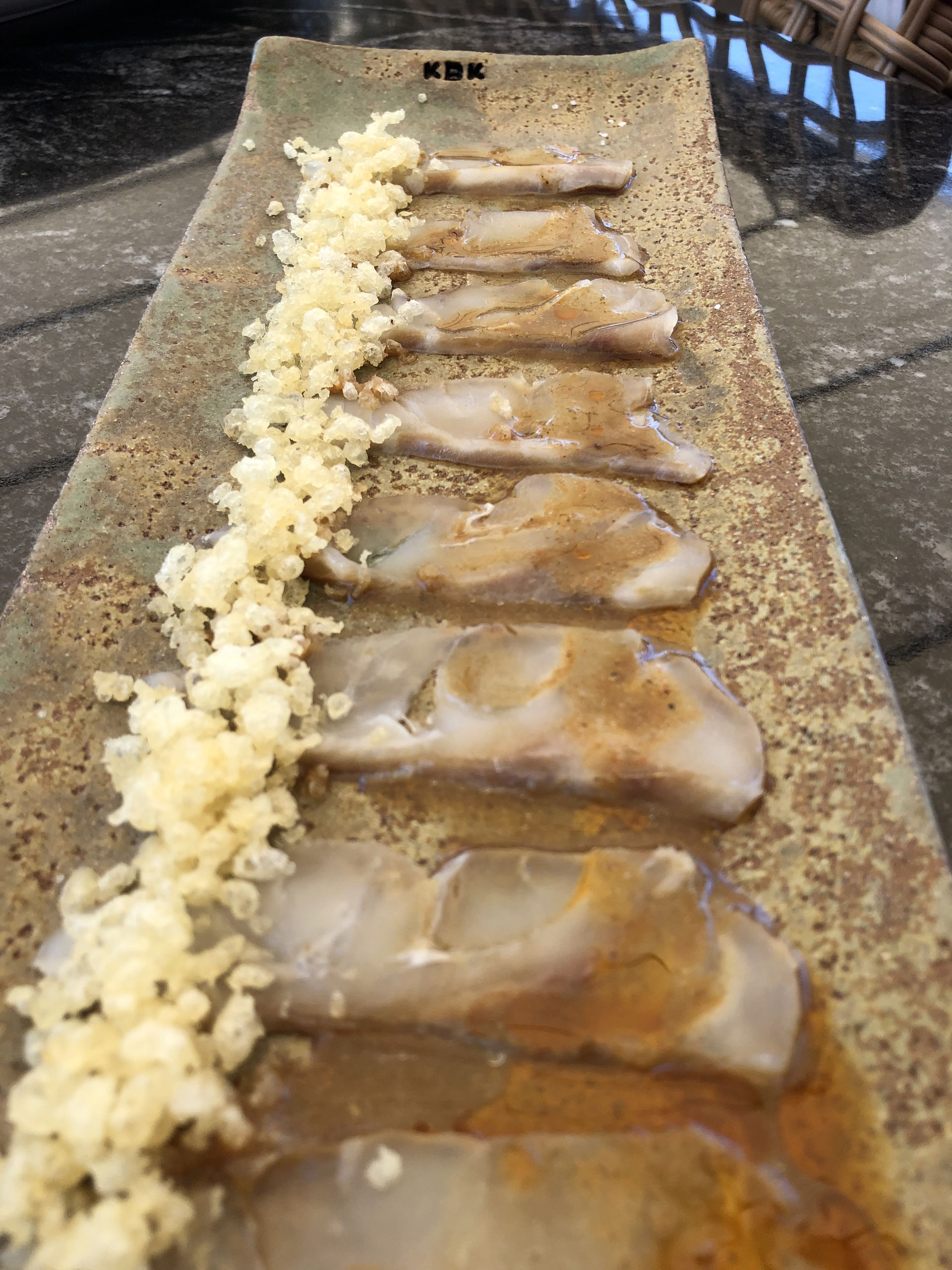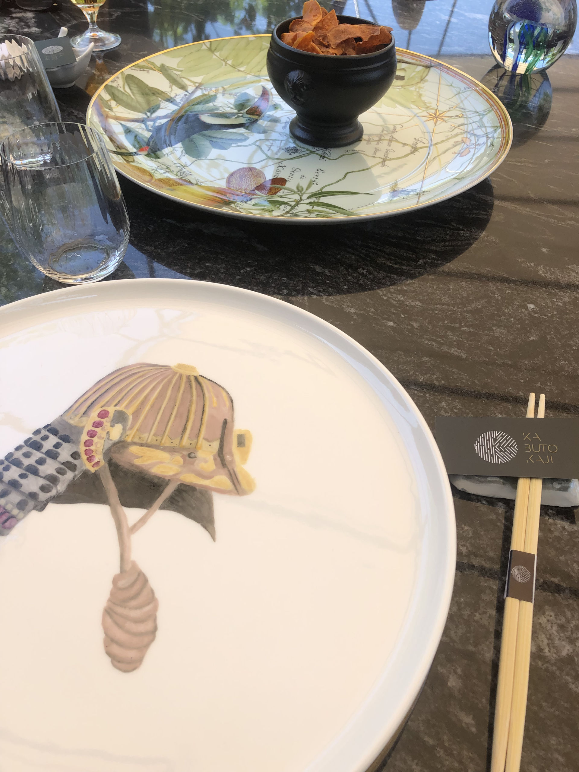 Ejemplo de las espectaculares vajillas en las que presentan sus platos en Kabutokaji.