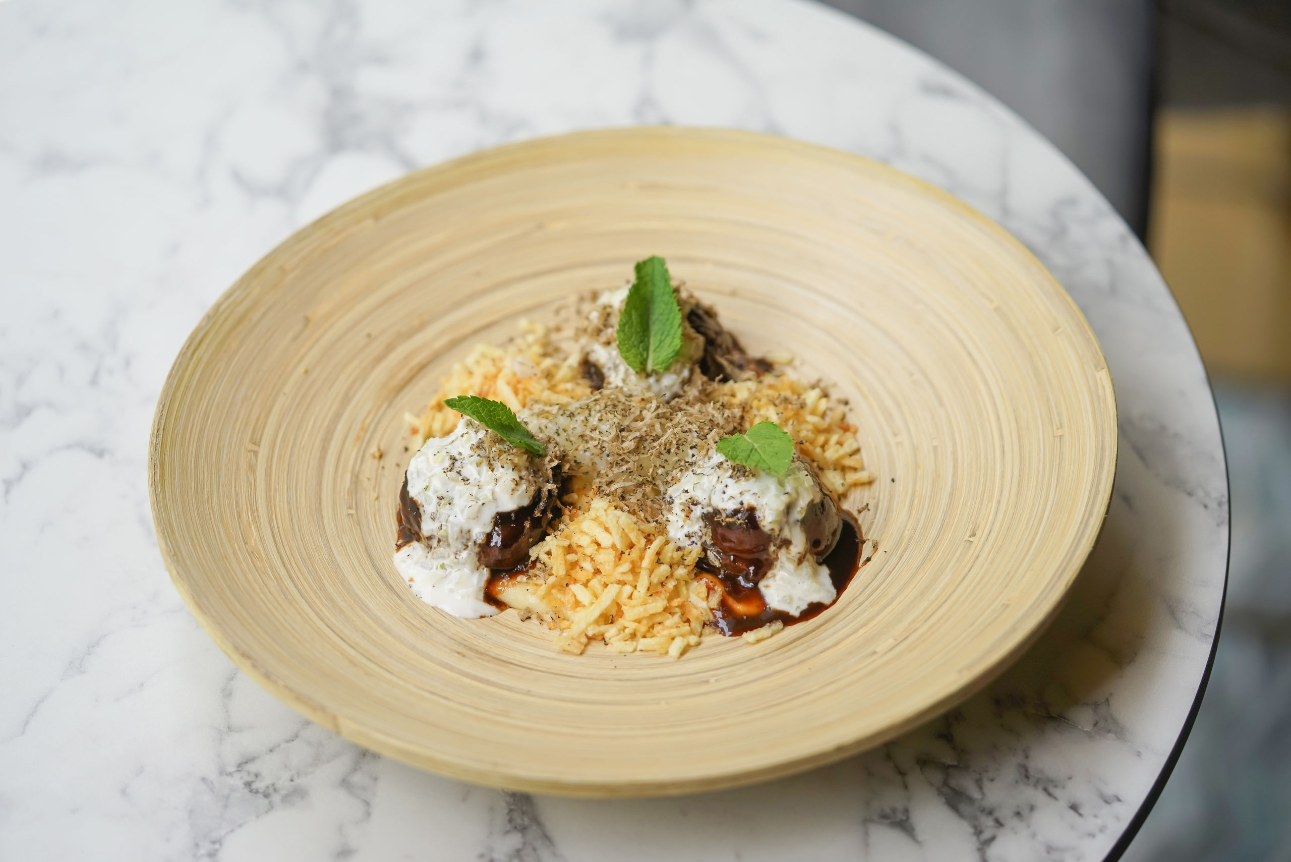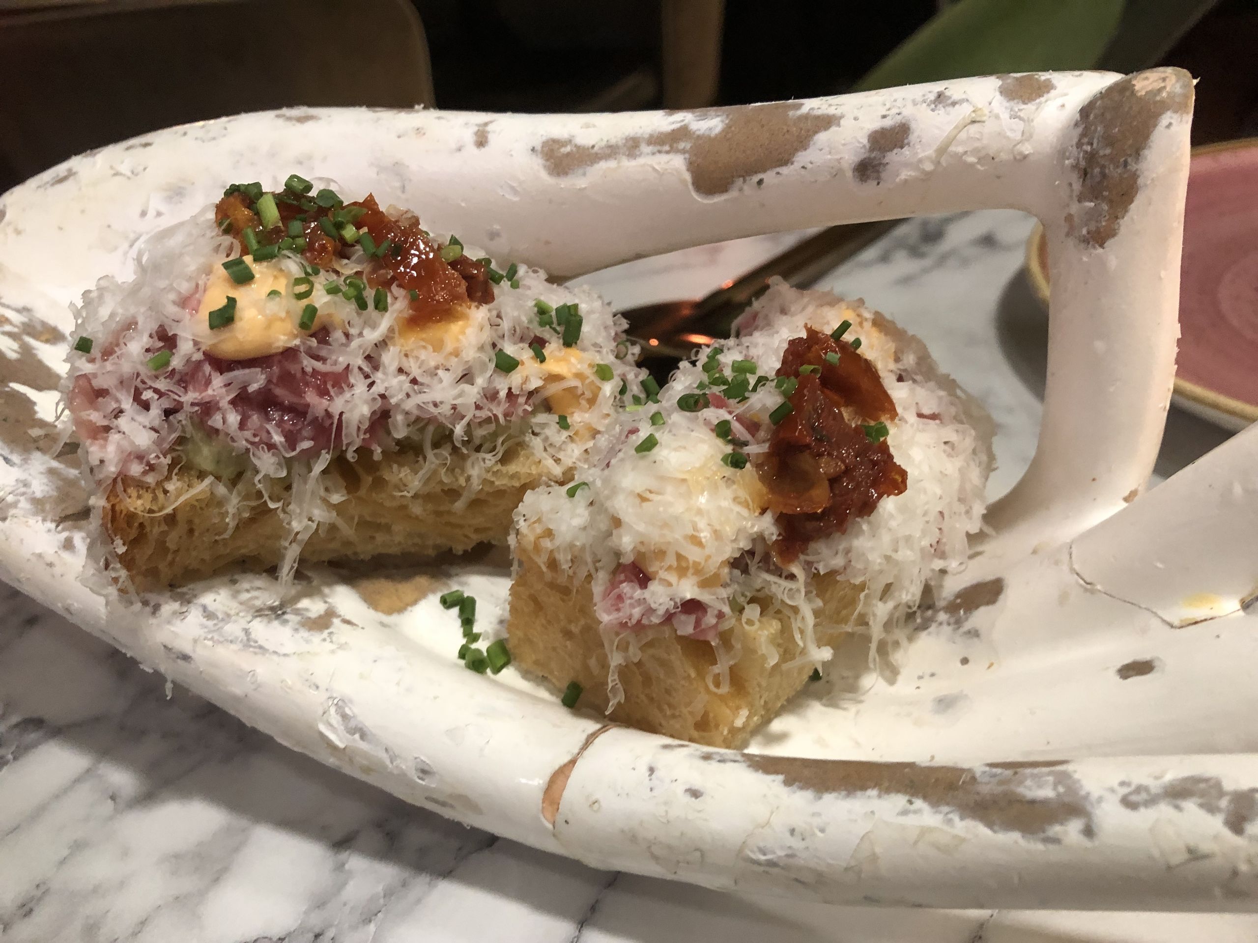 Albóndiga de rabo de toro con tartar de calamares, hinojo y trufa. (Segundo mejor plato de rabo de toro de España 2019)