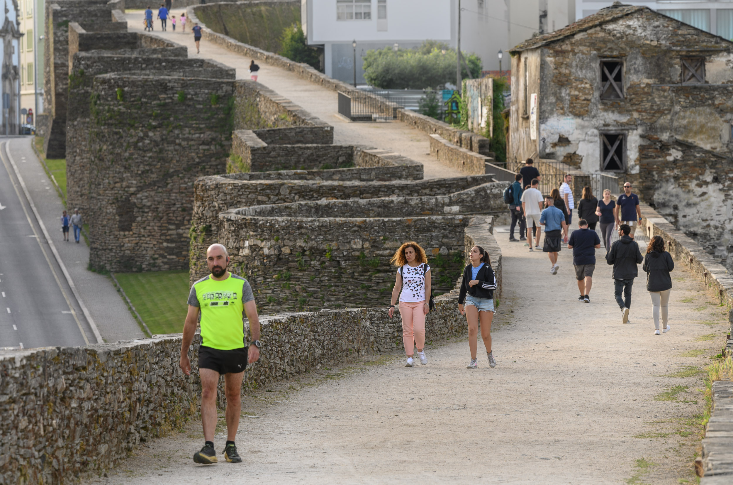 El paseo que recorre la parte superior de la Muralla de Lugo.