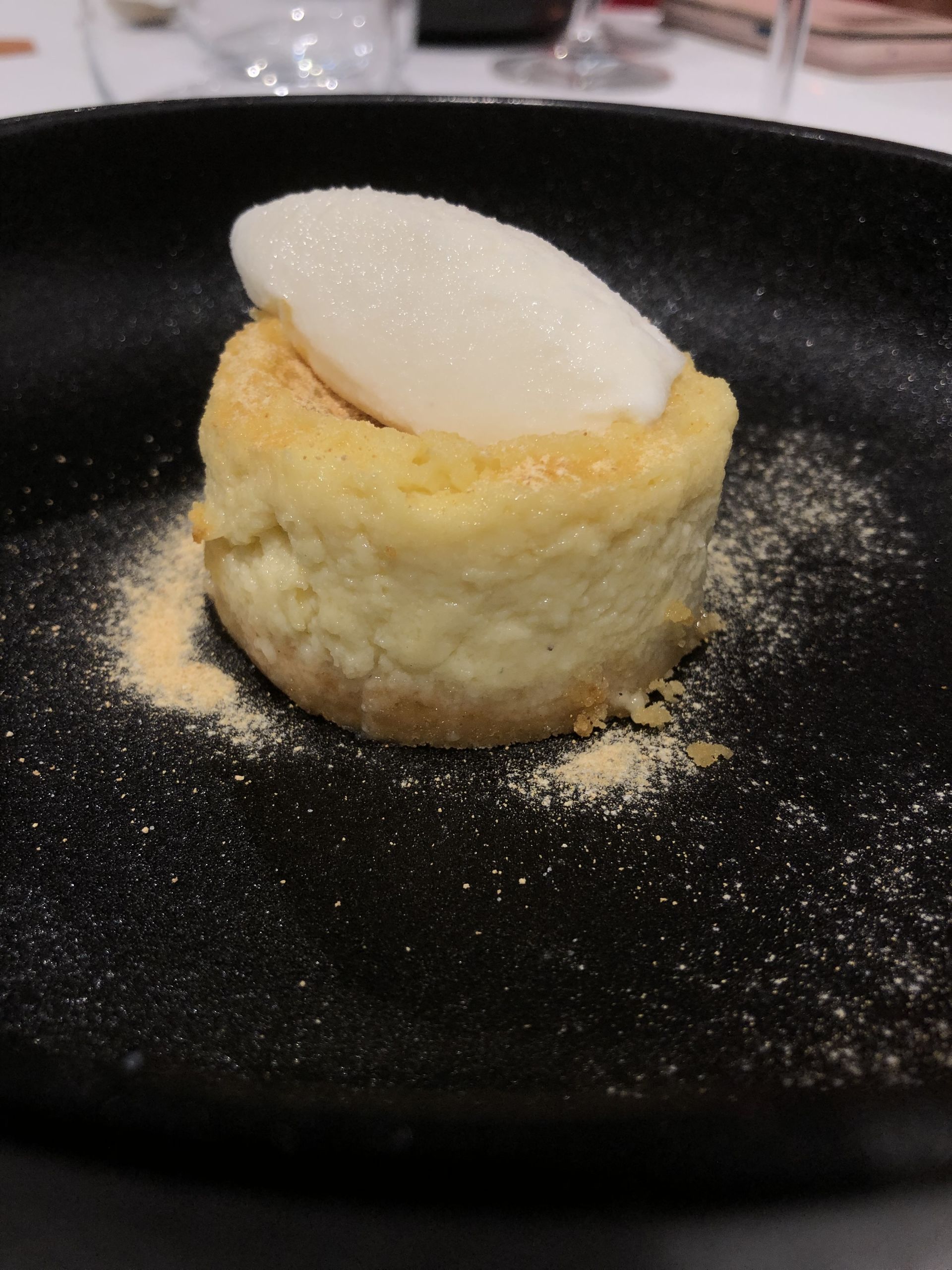 Tarta de queso azul "La Torre" de la Roda y helado de tomillo limón.