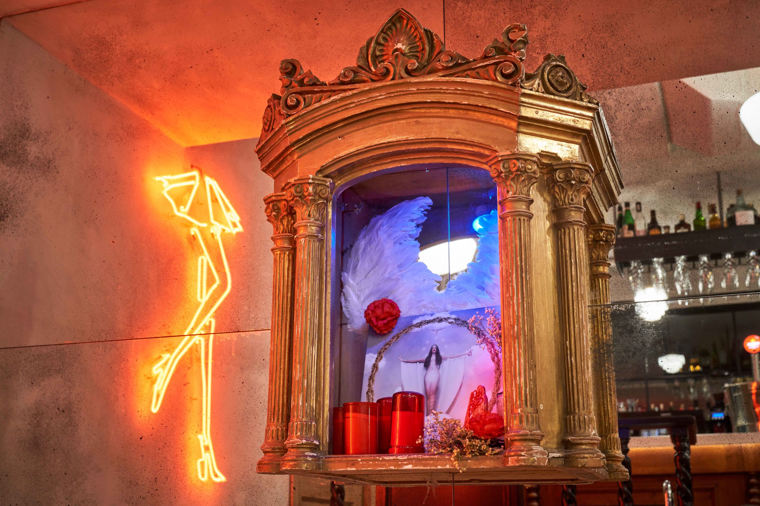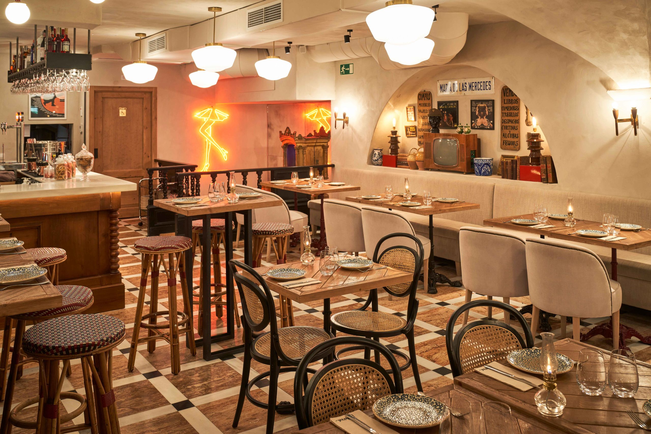En sus paredes te puedes encontrar bibliotecas llenas de libros y elementos de la cultura pop española con cuadros de Lola Flores y trajes de luces que te sumergen en la España más cañí.
