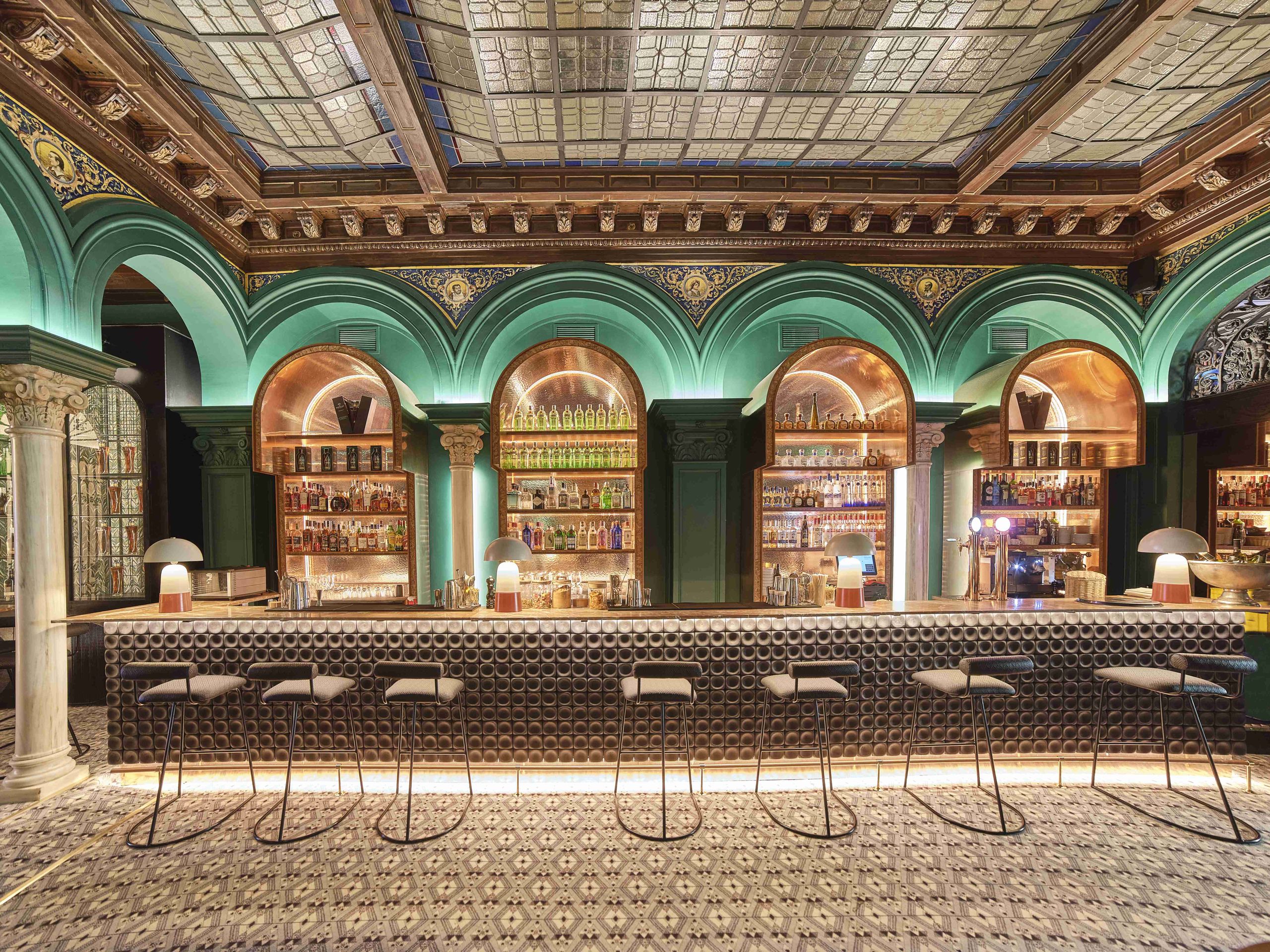 La espectacular barra de Torcuato está inspirado en los palacetes de la burguesía.