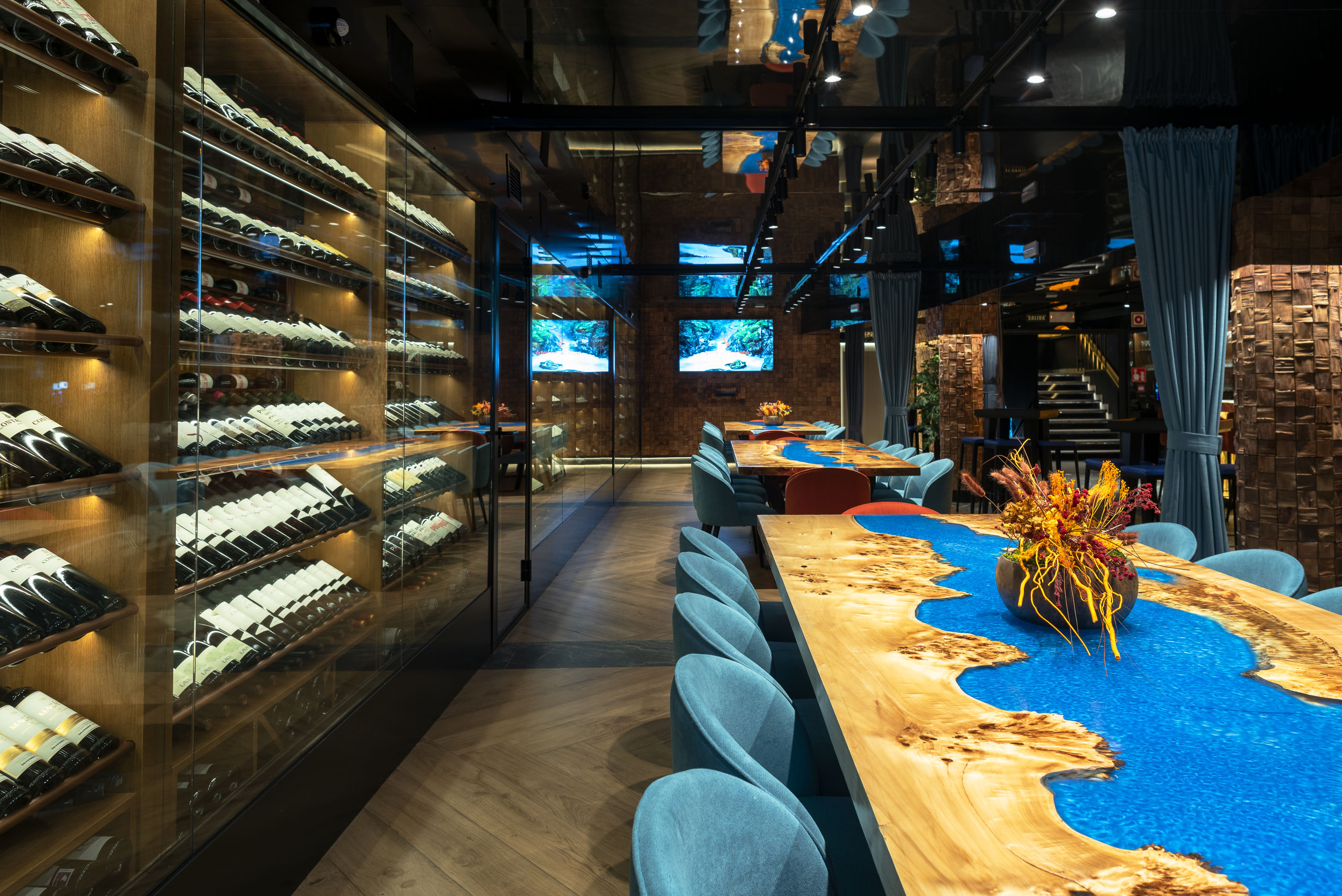 El Sky Restaurant, de 800 m2, se encuentra en la séptima planta y ofrece una experiencia gastronómica y audiovisual espectacular y envolvente: videoarte, pantallas led interactivas de gran formato y video mapping que evolucionan, mutan y se transforman, proyectándose en paredes y en una gran cúpula que se abre en su totalidad al cielo de la capital.