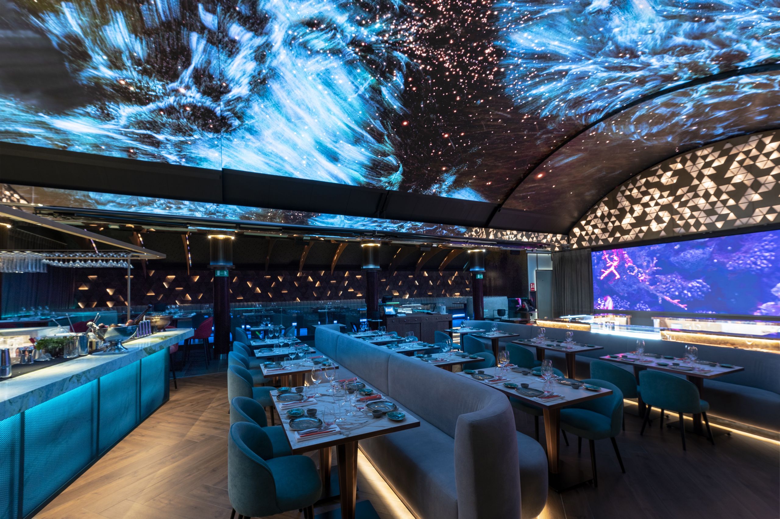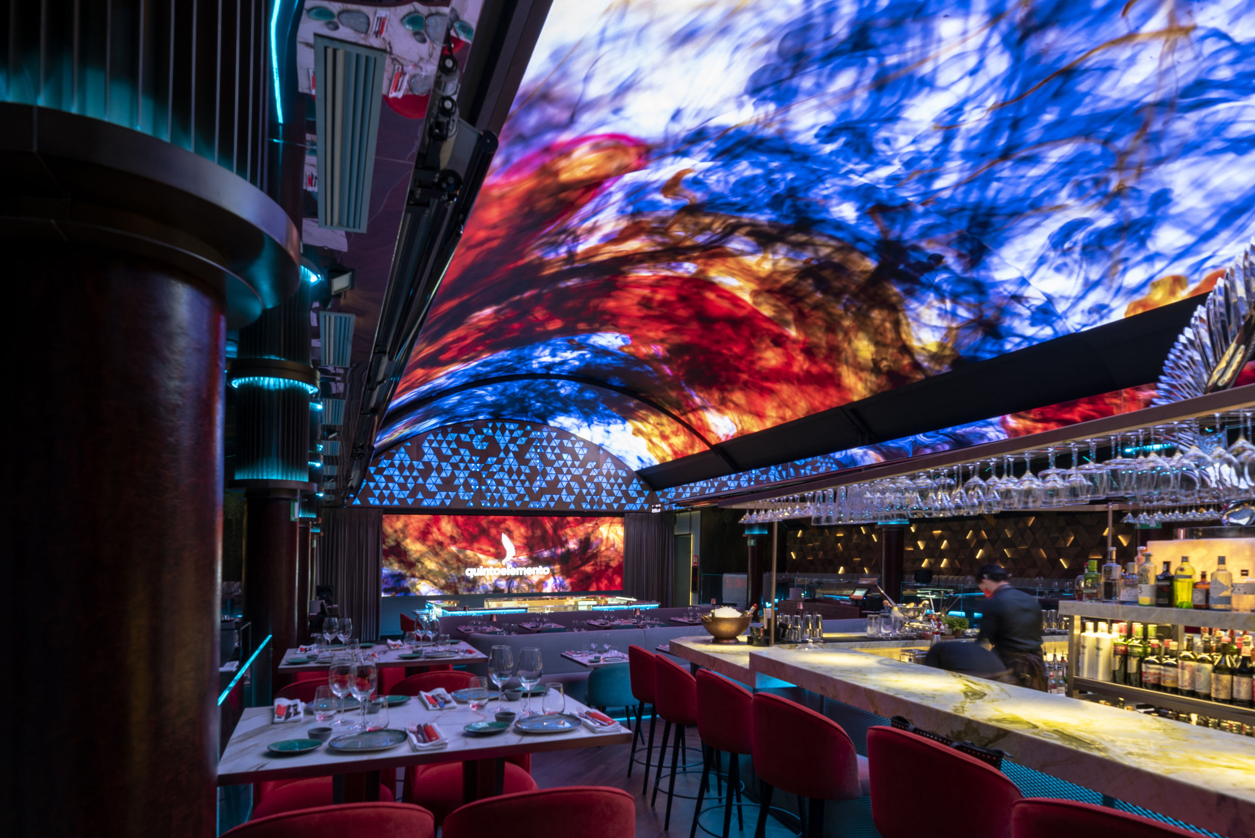 En continua evolución, el espacio ofrece una experiencia inmersiva que envuelve y atrapa al comensal bajo una espectacular bóveda 3D que se abre inmensa al cielo de la capital.