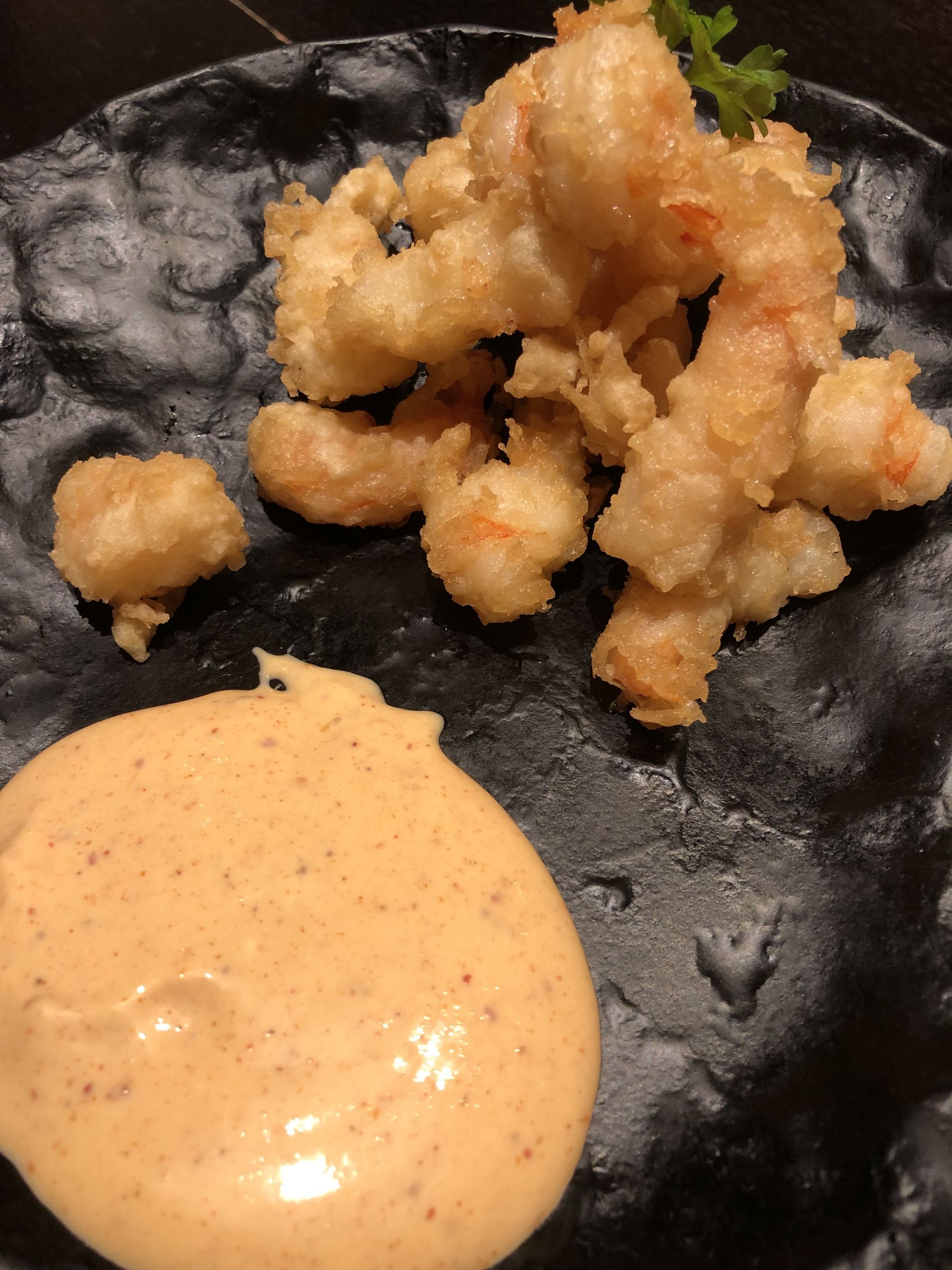 Ebi no tempura (13,80€), una delicada tempura de langostinos con salsa kimchi.