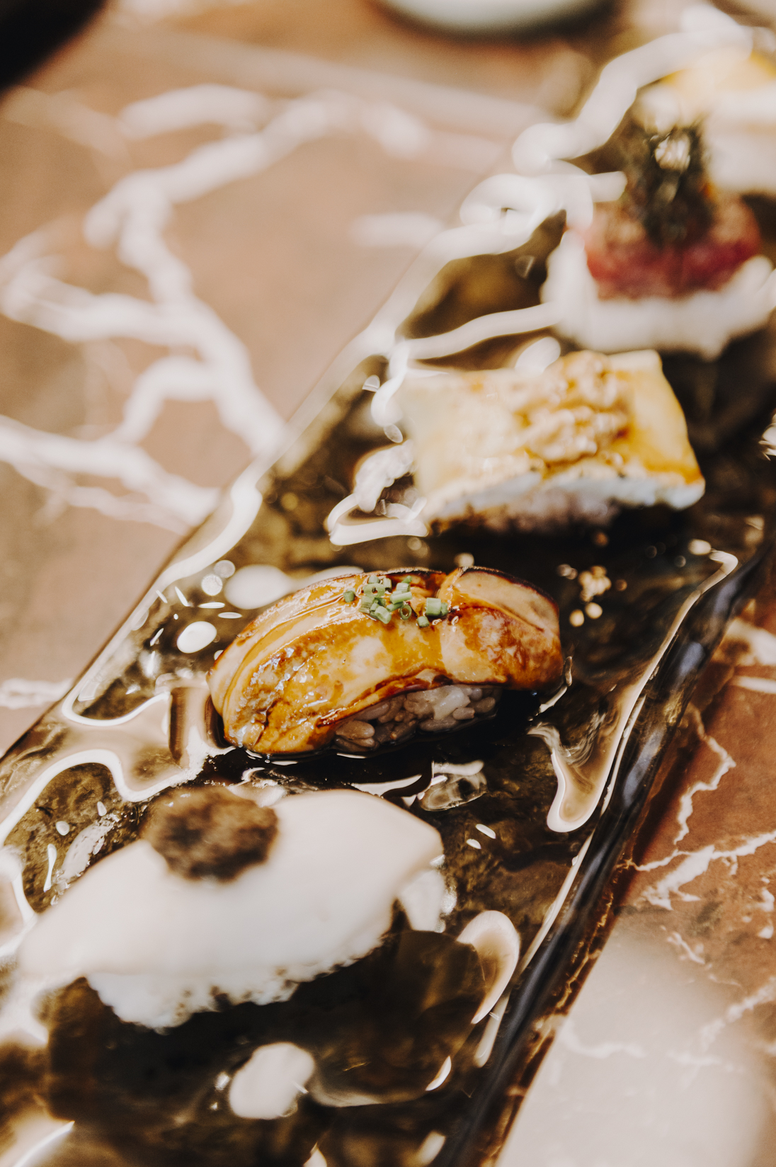 Yaki hotate to foie (4,90€), lo que traducido es un pincho de vieira a la plancha co foie del Ampurdán, espinacas y salsa teriyaki.
