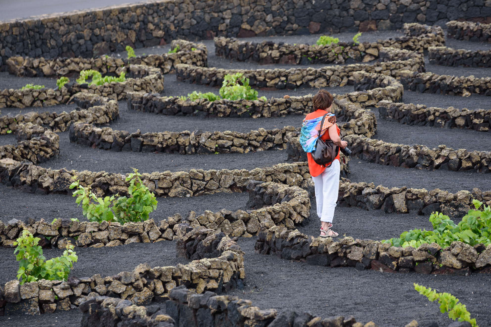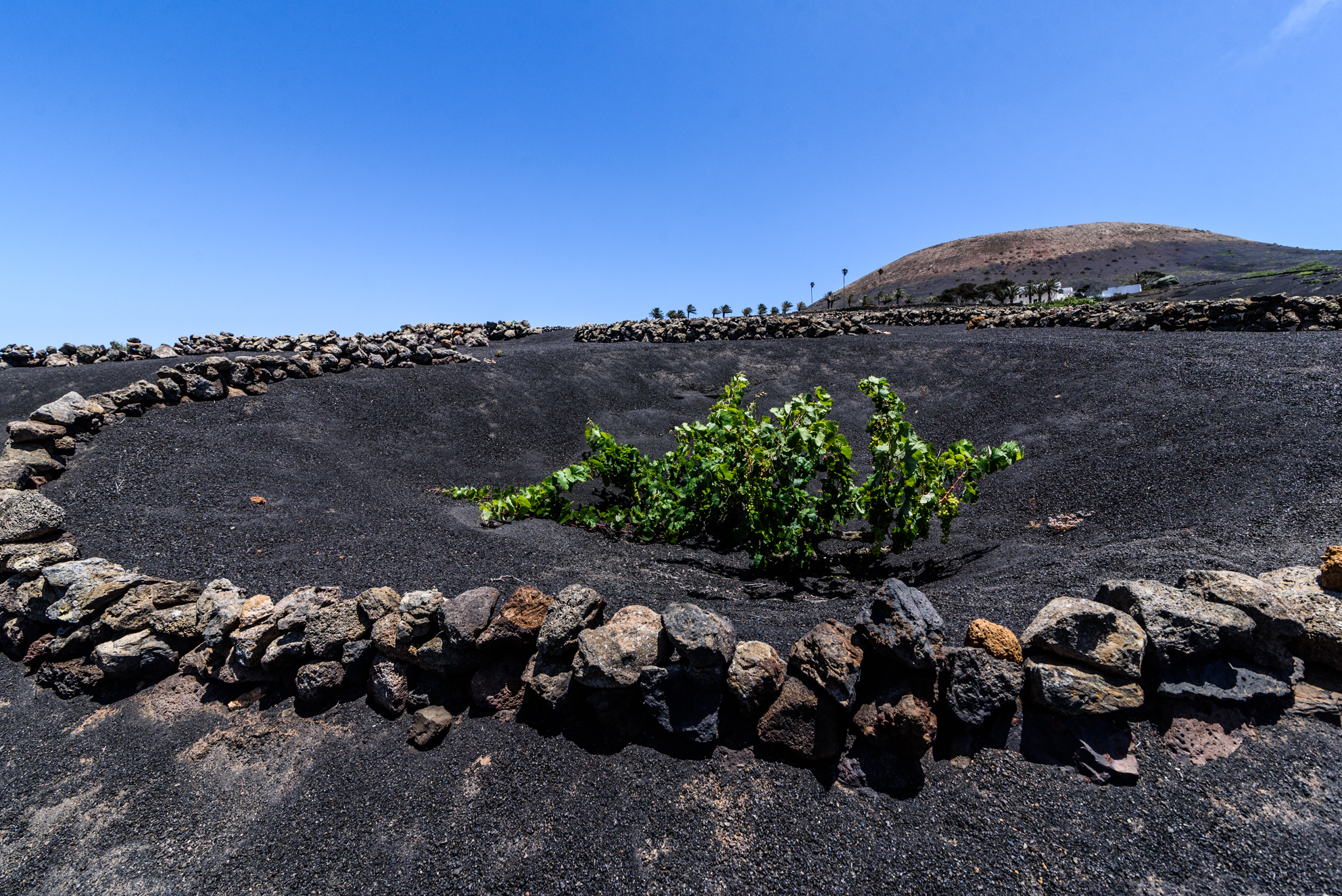 El contraste entre el terreno negro de piedra volcánica y los viñedos en tonos verdes son una de las postales de Lanzarote. La Geria es un Espacio Natural Protegido de Canarias desde 1994 y comprende más de 5.000 hectáreas repartidas entre los municipios de Yaiza, Tías, Tinajo, San Bartolomé y Teguise.