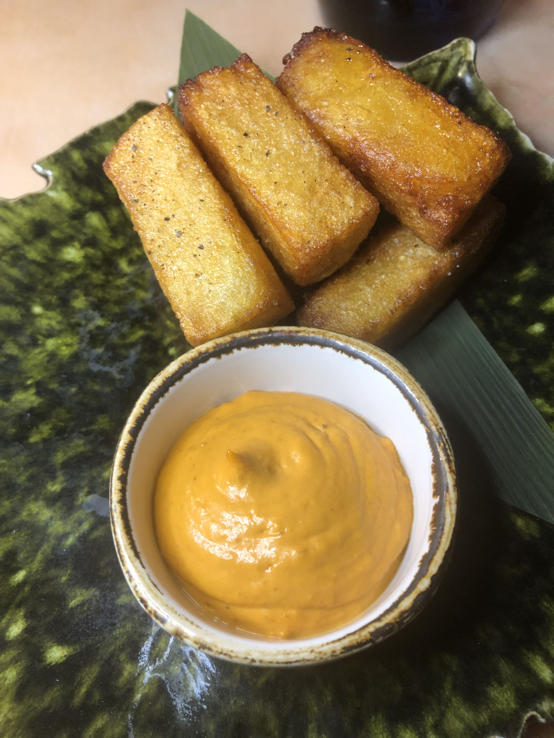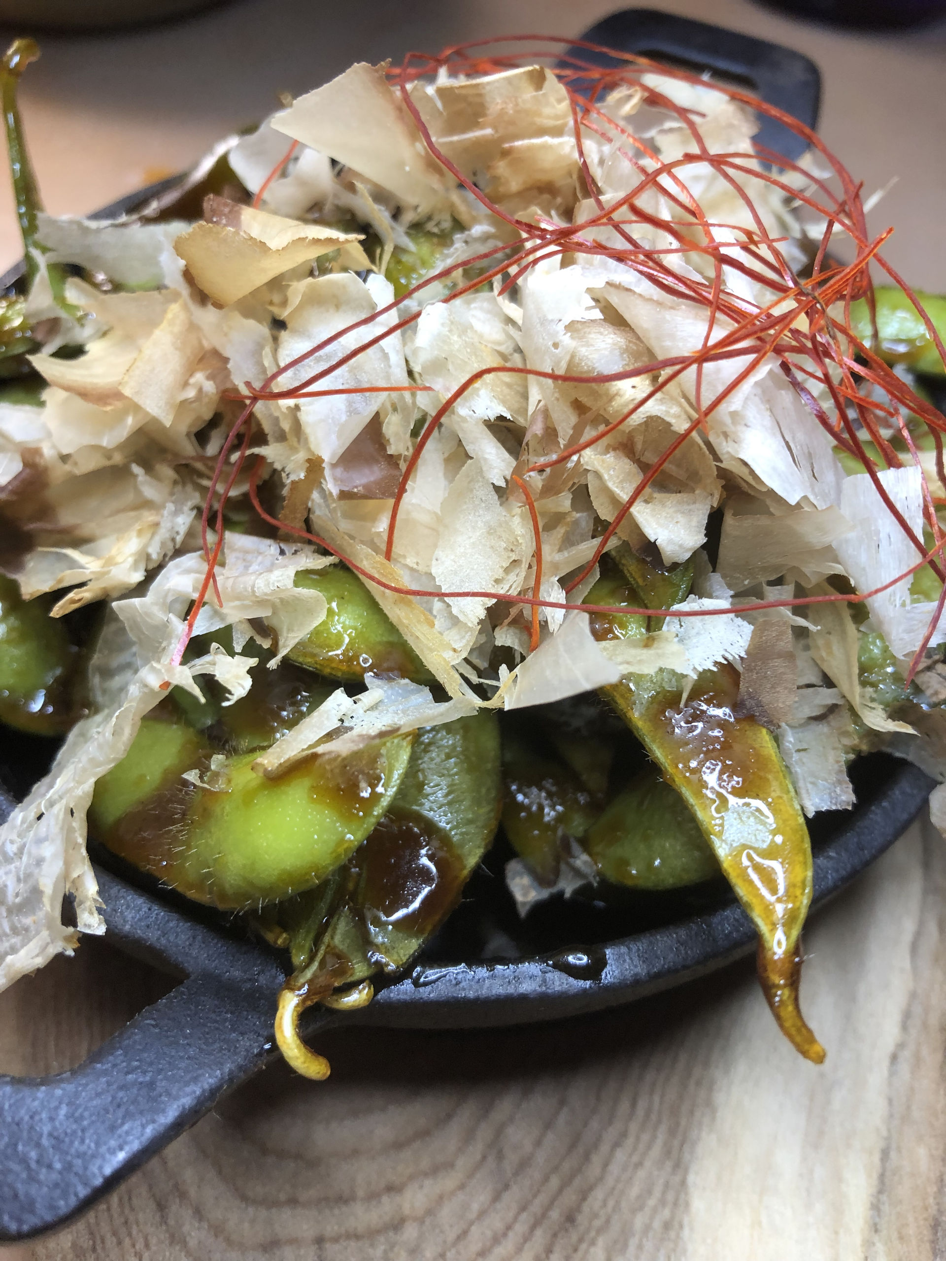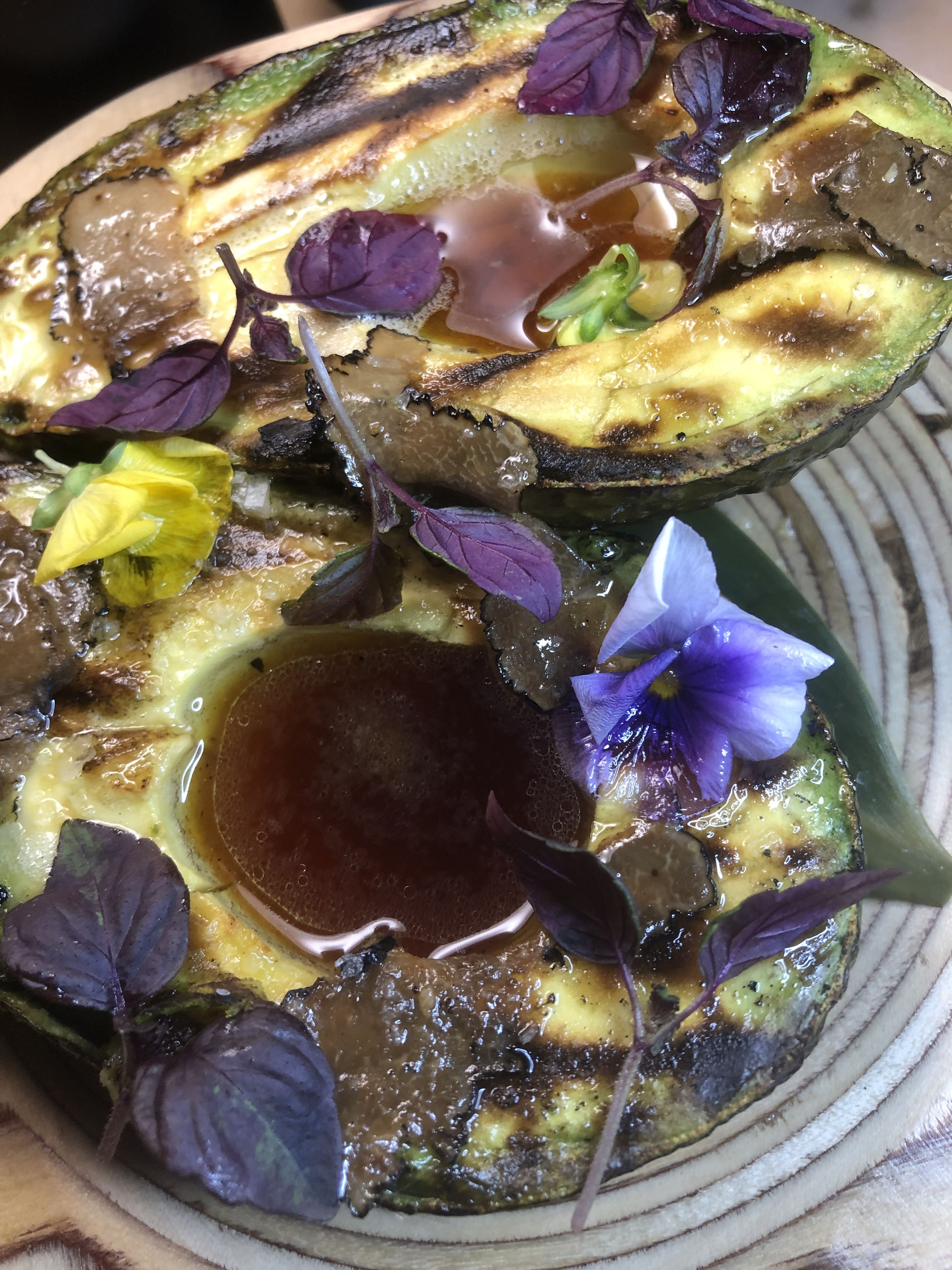 Muy buenos grilled avocado, unos aguacates trufados y muy bien acompañados de la salsa ponzu.