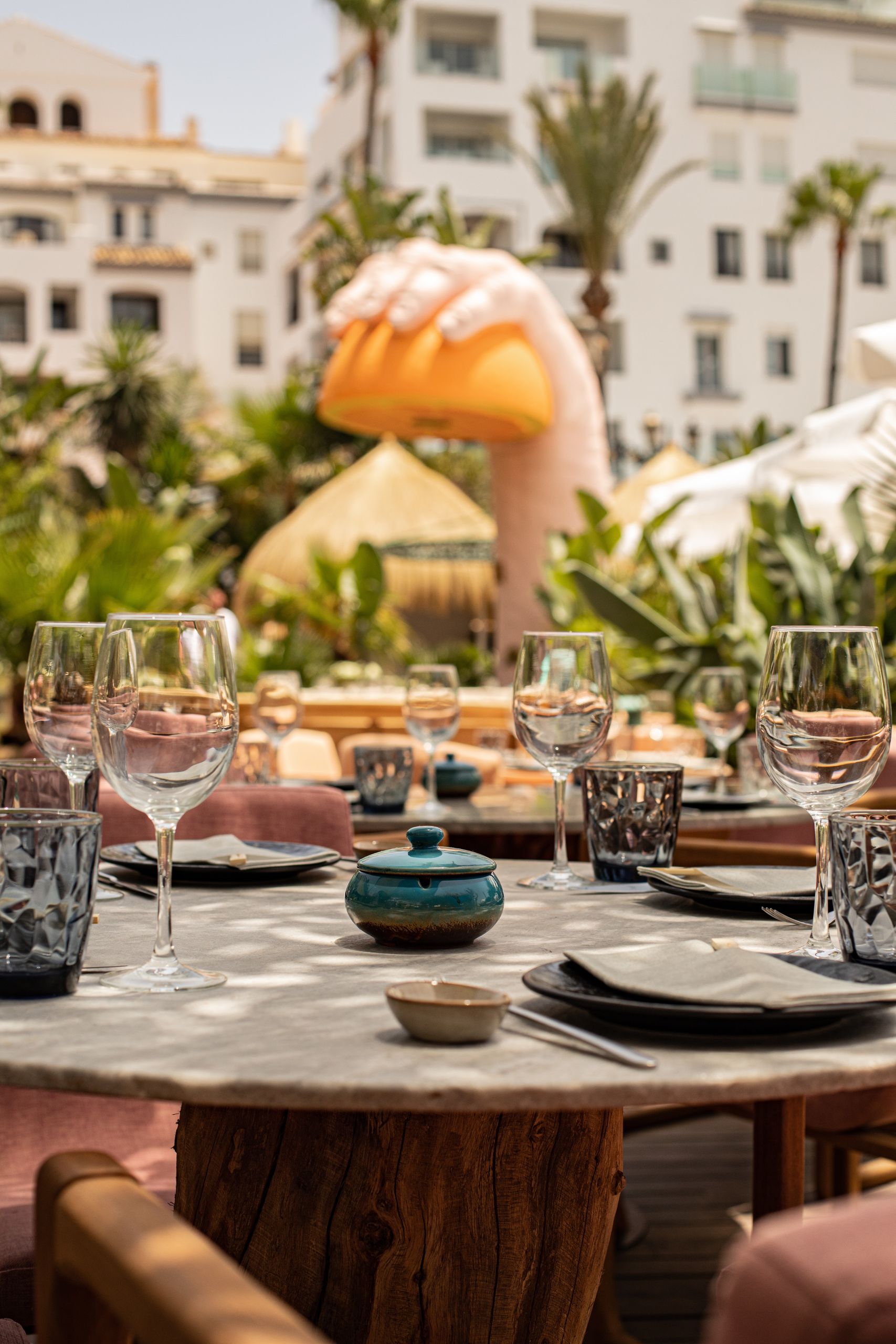 El interiorismo de Salvaje Marbella se caracteriza por un espíritu costero que define por completo al espacio. La zona interior está climatizada.