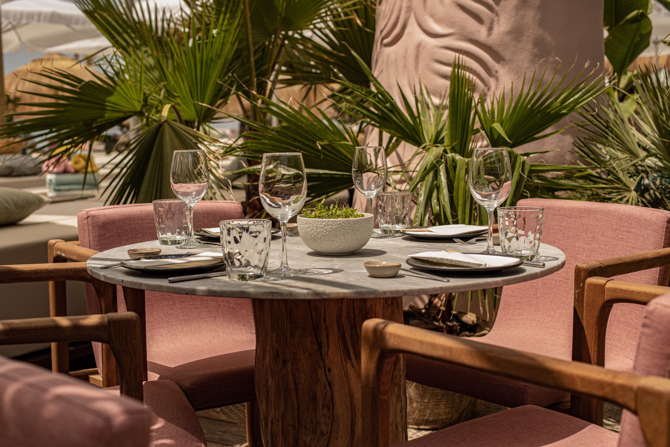 La terraza y el beach club de Salvaje Marbella se funden con el Mar Mediterráneo.