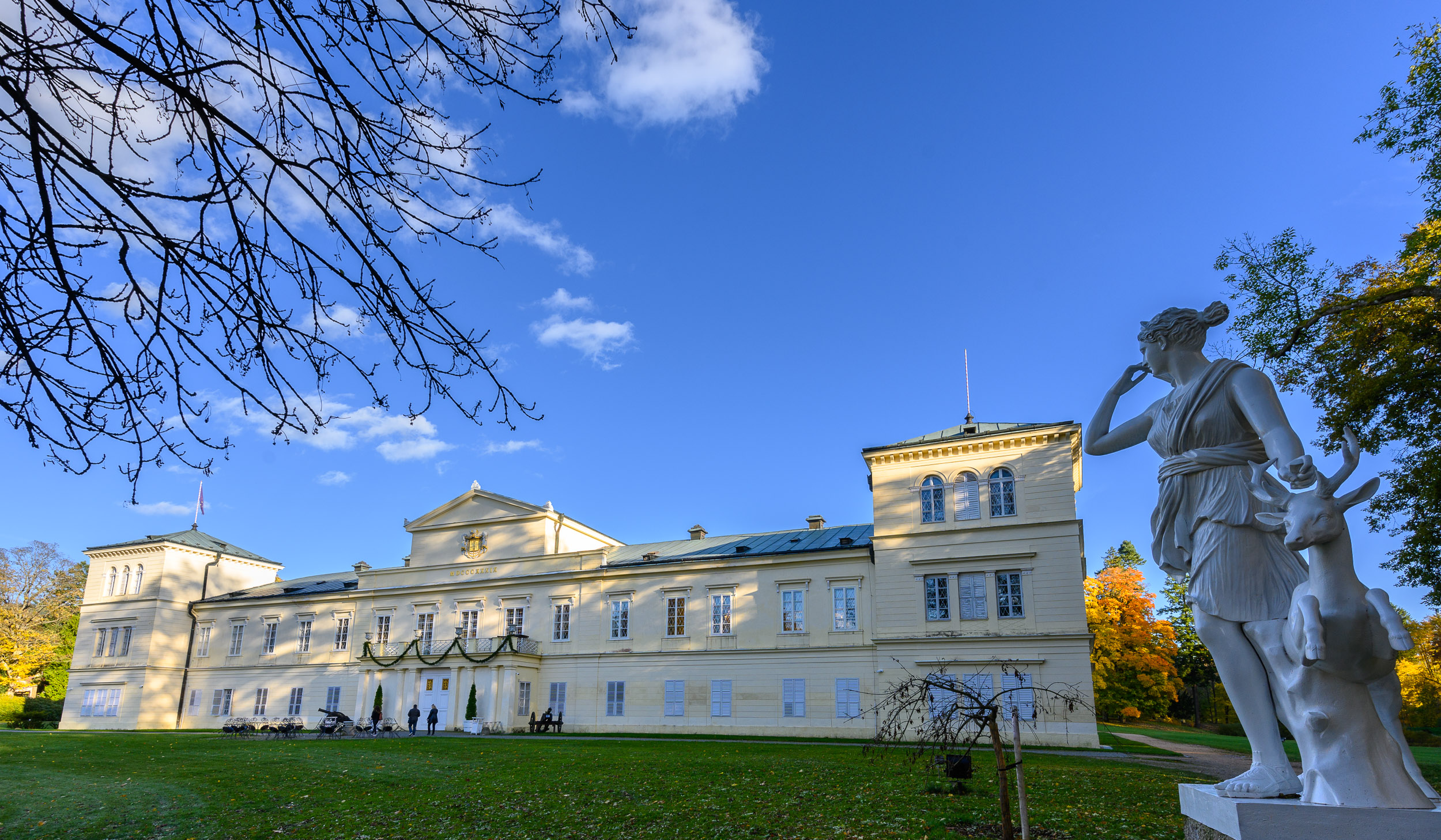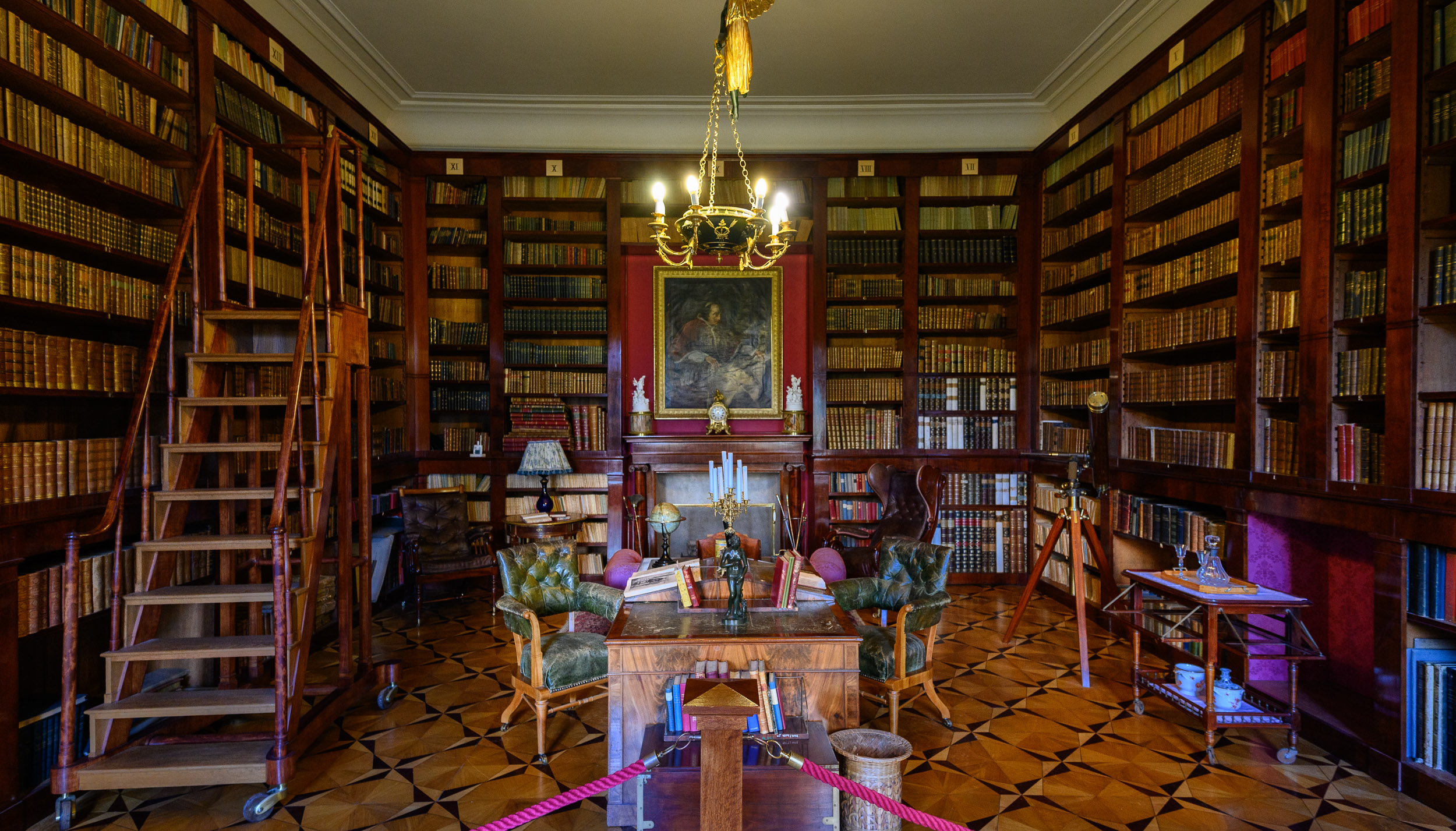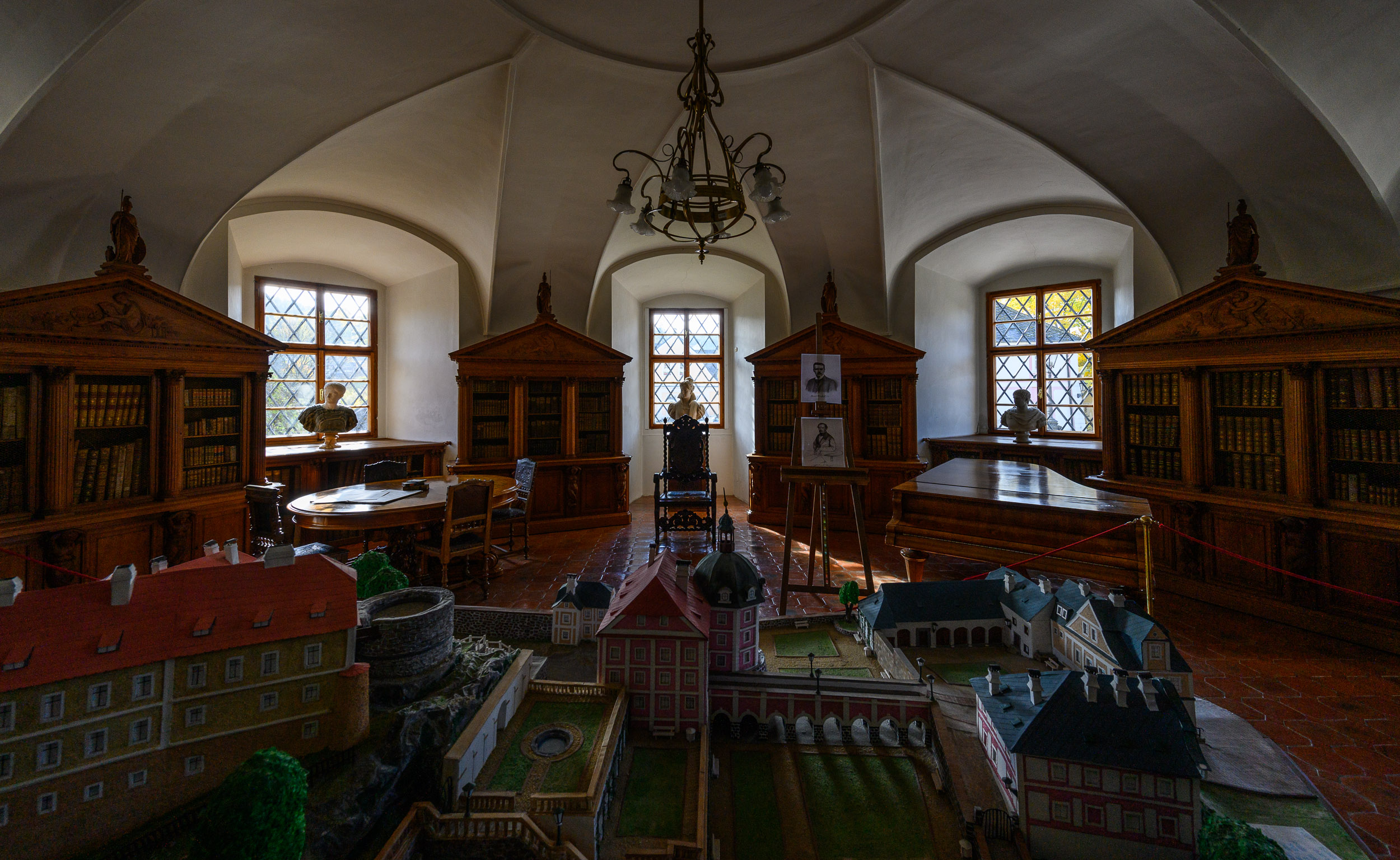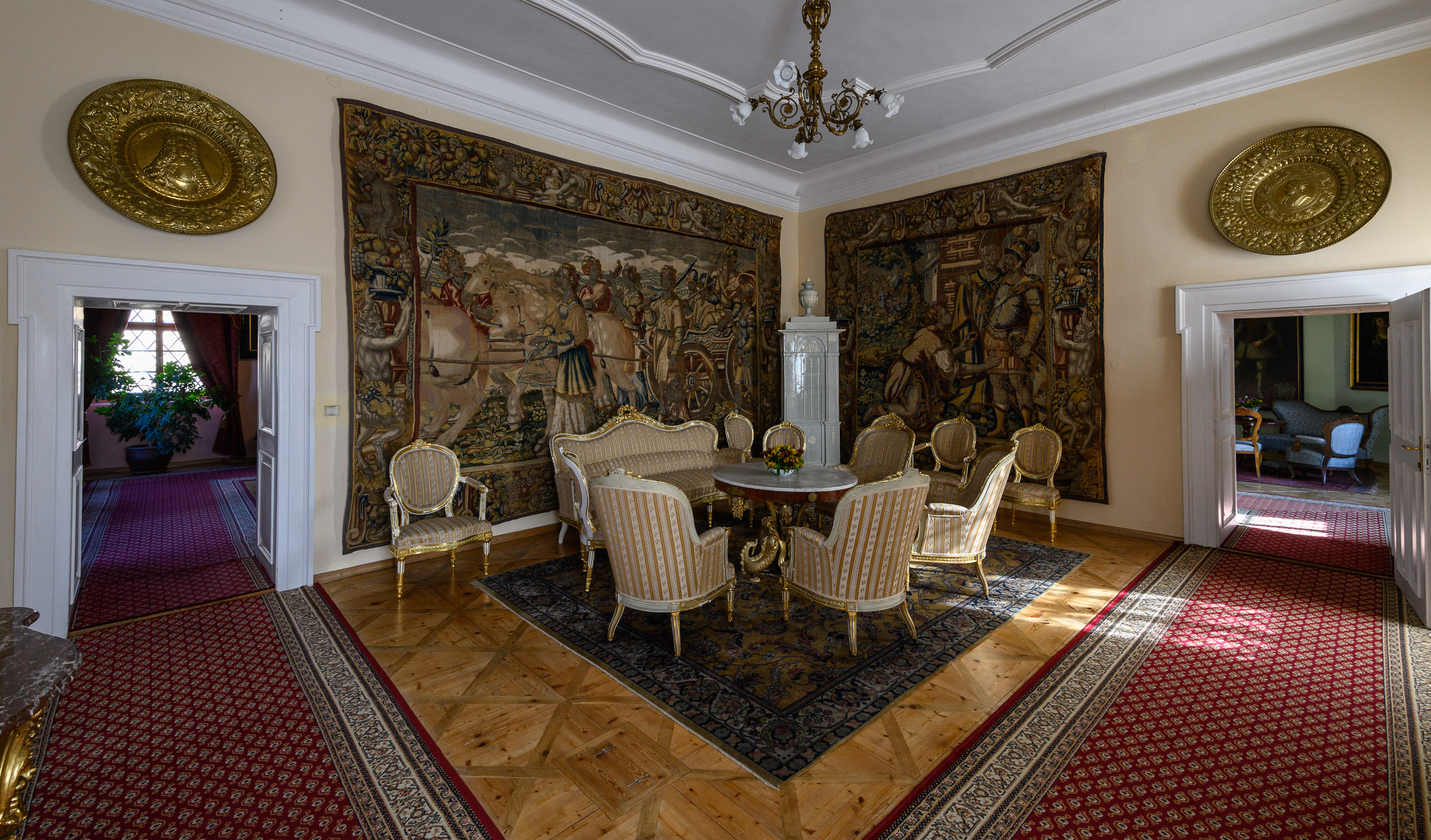 El comedor principal del palacio de Kynžvart, con una estatua de Eros y Psique proveniente del taller del gran escultor Antonio Cánova.