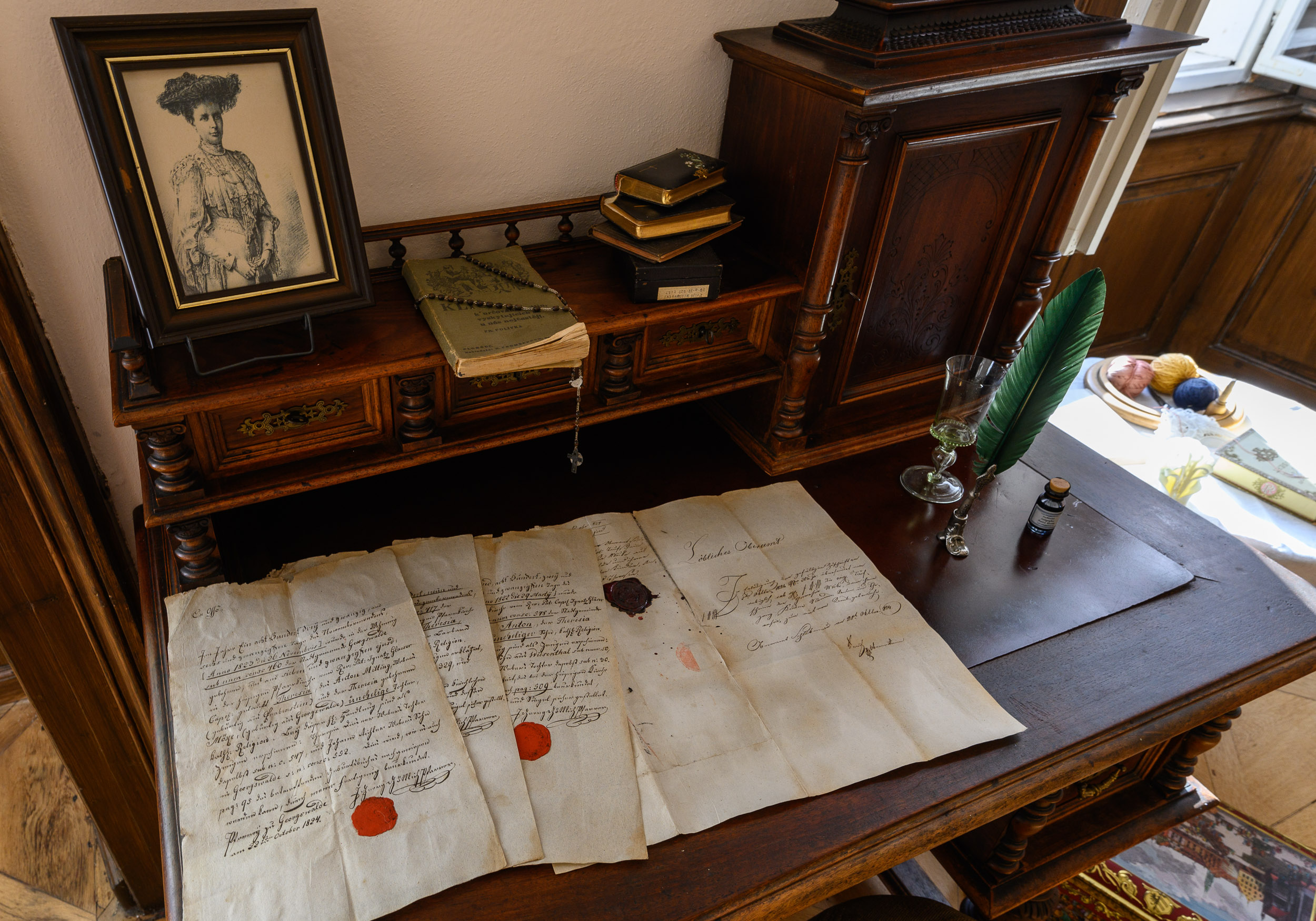 Documentos antiguos en la cuidada exposición que ofrece hoy en día el castillo Chyse.