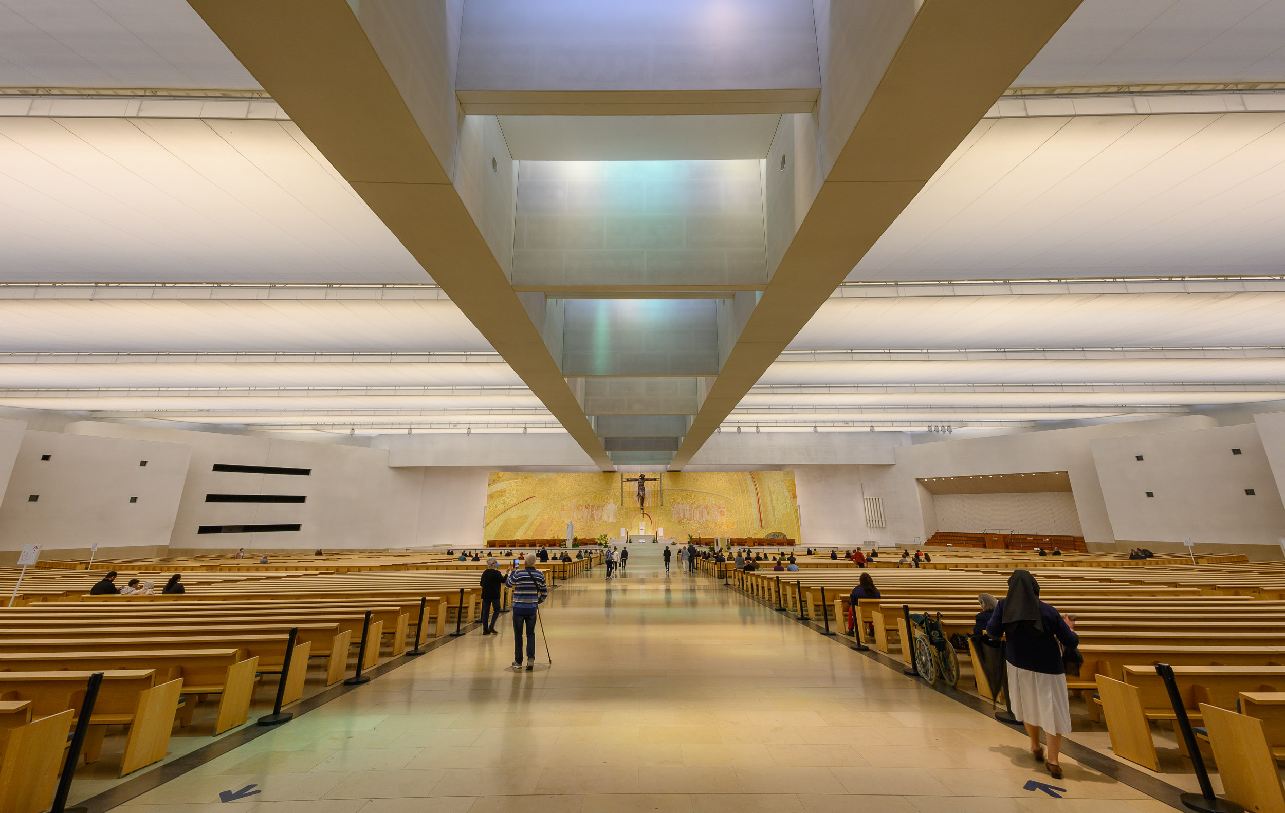 El impresionante interior de la basílica nueva de Fátima, inaugurada en 2007.