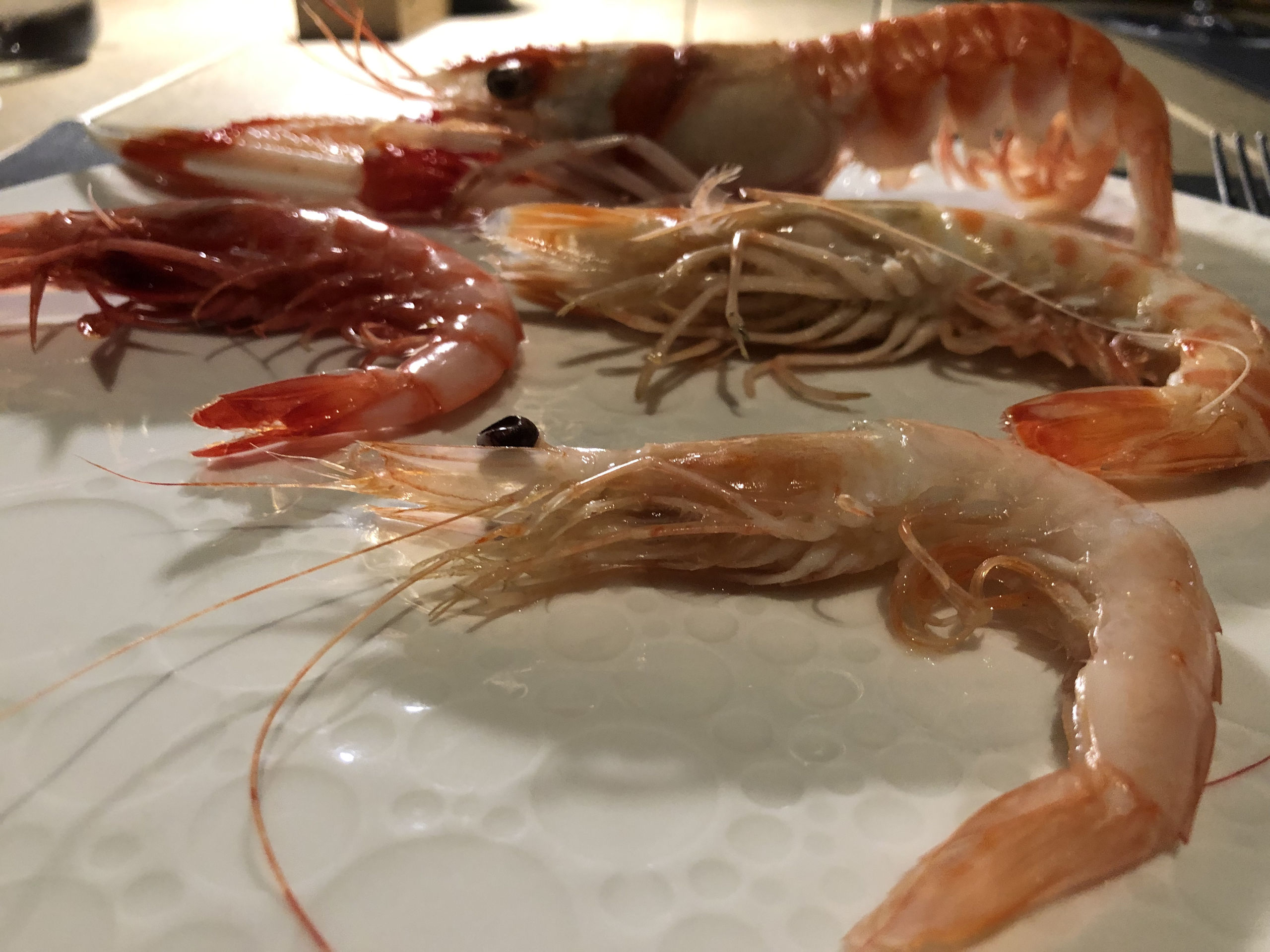 En esta ocasión comenzamos con el afamado brioche con mantequilla noisette, atún rojo y ralladura de cítricos y chocolate blanco (12€), una maravilla la mezcla de sabores aunque es cierto que el de la mantequilla en el pan destaca sobre el resto. Mucho mejor me parece el corte de tartar de gamba blanca y crema Ibérica (16€), sublime.