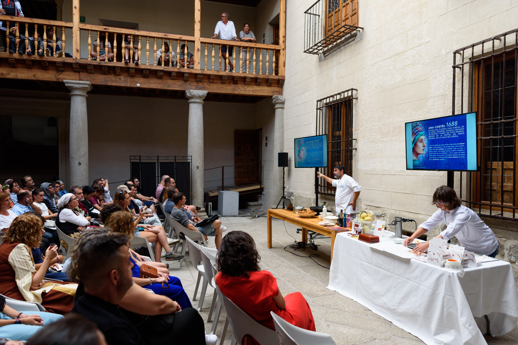 La gastronomía fue también la protagonista en el Palacio de Superunda durante este sábado. Desde las 18:30 horas tuvo lugar un showcooking a cargo de Javier Zafra, un chef de calidad, experto en la cocina sefardí, que explicó con maestría y en un tono muy divulgativo la experiencia culinaria de este pueblo y que también recopila en su libro La cocina judía, de lo cotidiano a lo sagrado. Una mezcla de sabores y culturas que define a la perfección la esencia del Mercado de las Tres Culturas de Ávila, una de las fiestas medievales más importantes de España y que colgó el cartel de aforo completo como casi todos los eventos del programa que se ha preparado para este año para celebrar la veteranía de las Jornadas Medievales que cumplen 25 años.