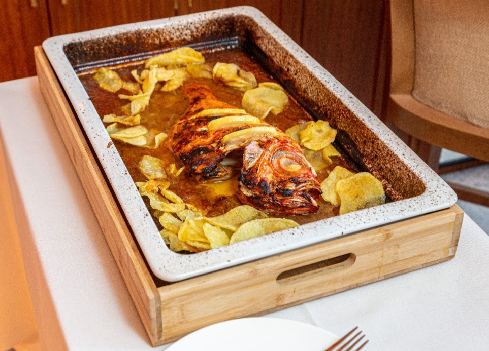 Los pescados salvajes de anzuelo son otro de los puntos fuertes del restaurante, pero el rey de la casa y que da nombre al restaurantes es el virrey asado al horno con una exquisita salsa y patatas (precio según mercado, el de hoy 80€/kg). Te lo presentan en la mesa y después lo emplatan para disfrutar de un gran producto.