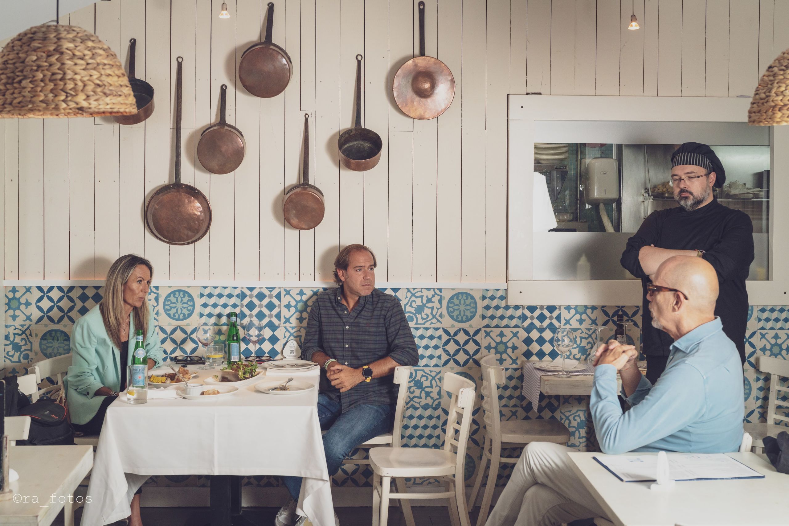Para el que no haya estado, sí tú, te cuento que Taberna Puerto Lagasca tiene tres espacios diferenciados. Nada más entrar te encuentras con una barra y mesas altas para un picoteo informal. Más adelante está el comedor con una decoración que recuerda a la típica taberna de un pueblo marinero en la que el blanco y el azul, junto a los espejos, te invita a sentarte y disfrutar de una estupenda velada. Además, cuentan con una terraza perfecta para disfrutar del aire libre y a la espera de ser reformada, según nos cuenta el propio Pepe Caldas.