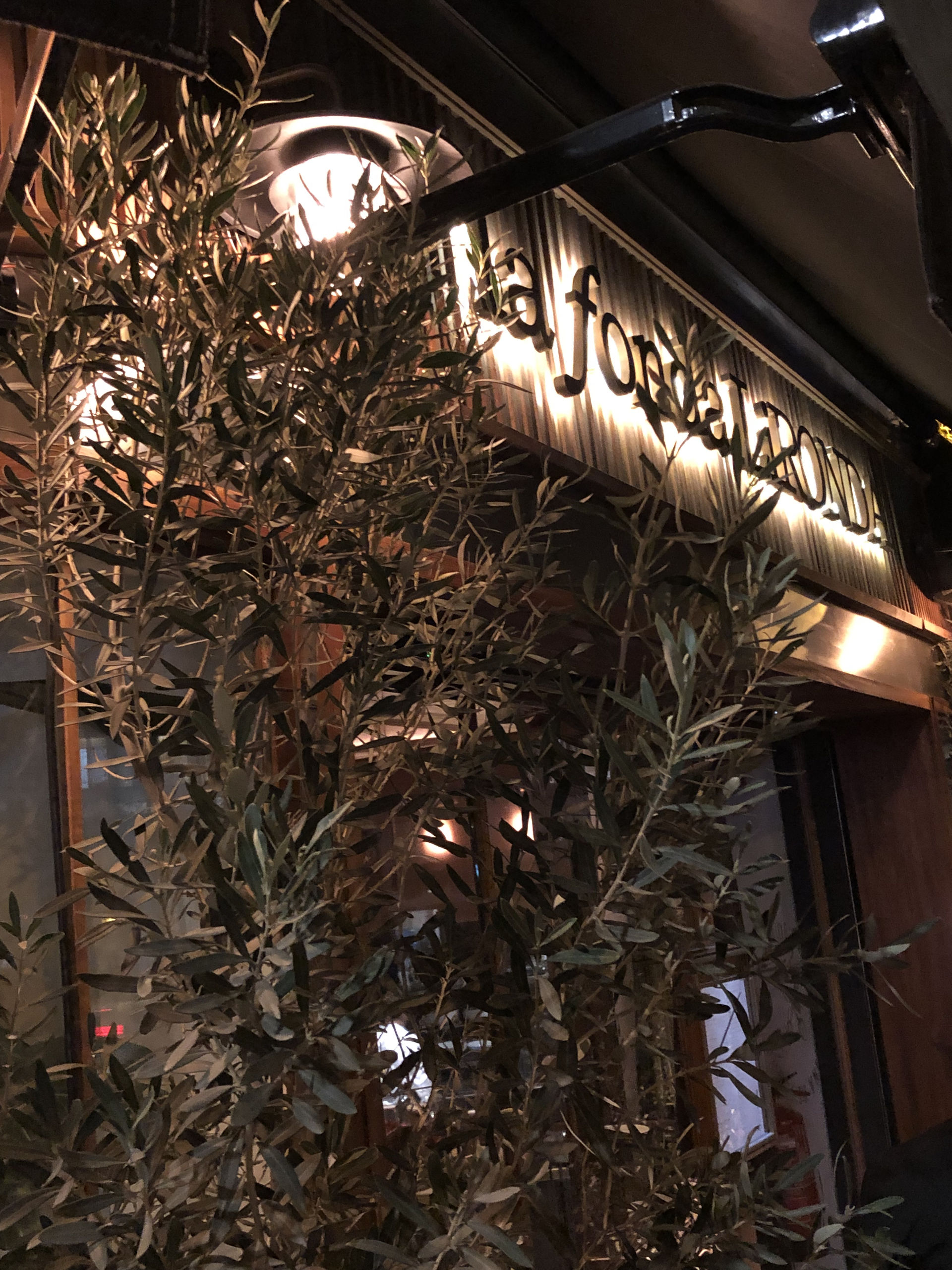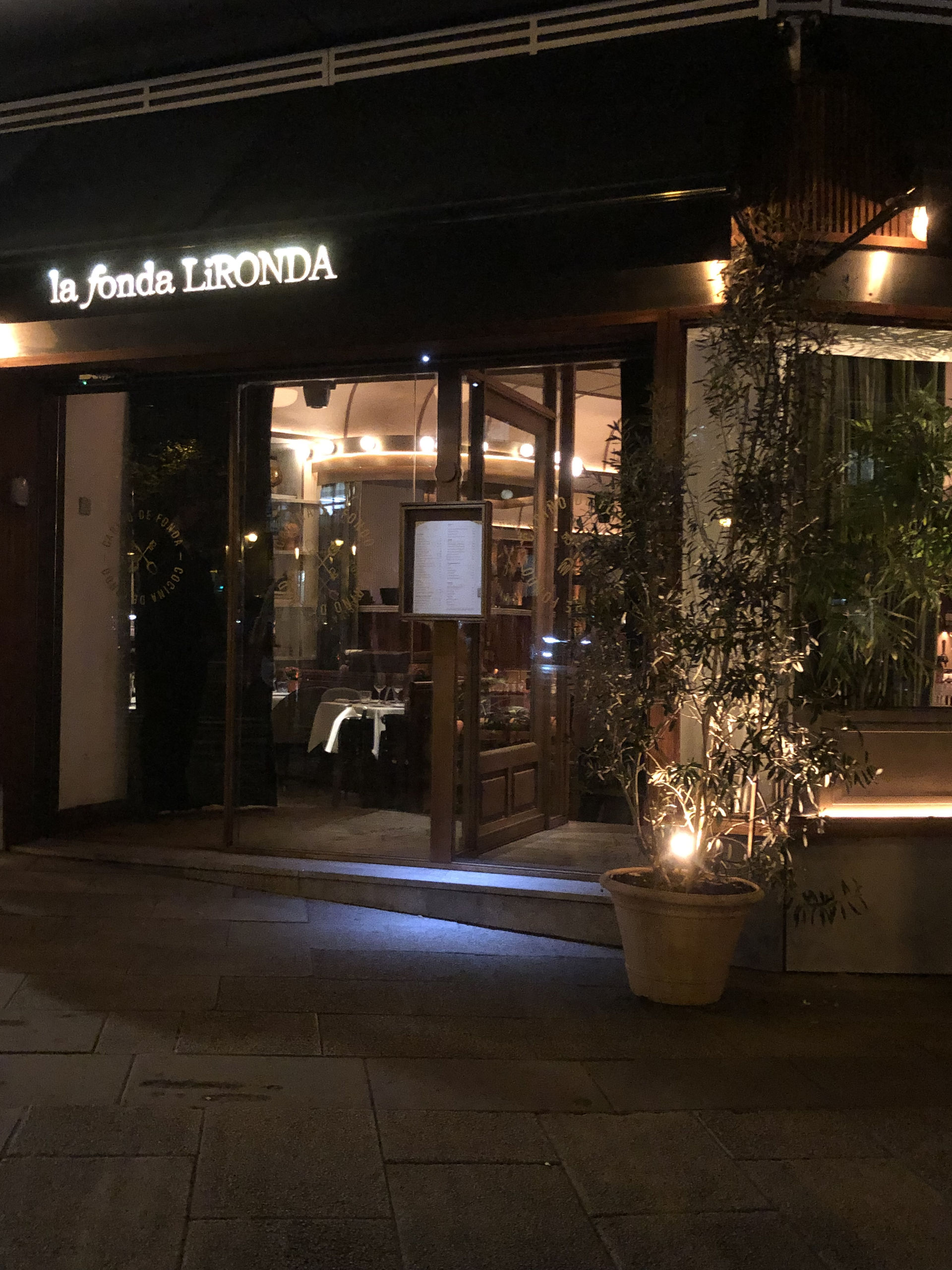 La iluminación de la entrada de La Fonda Liranda hace que te detengas aunque no vayas a entrar.
