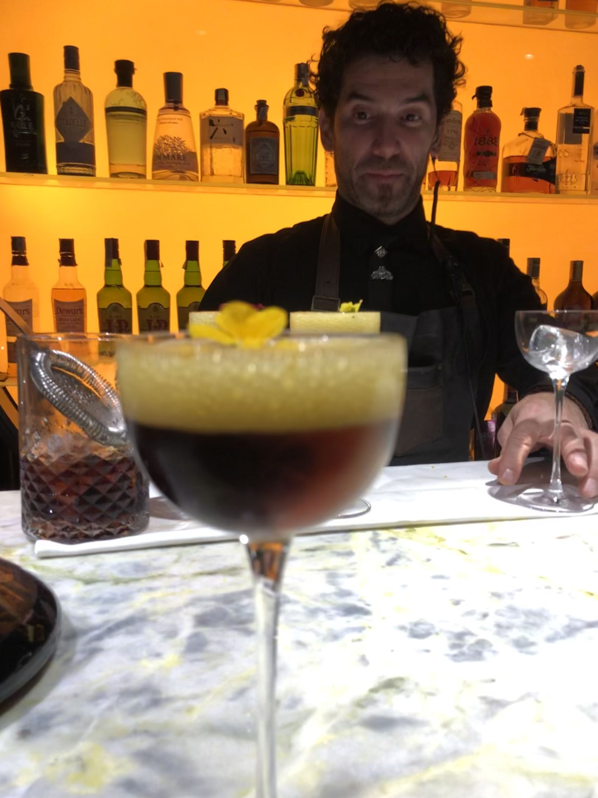 El artista coctelero de Quintoelemento, Dazfer Subero elaborando un cóctel de bienvenida a base de vermú Yzaguirre.