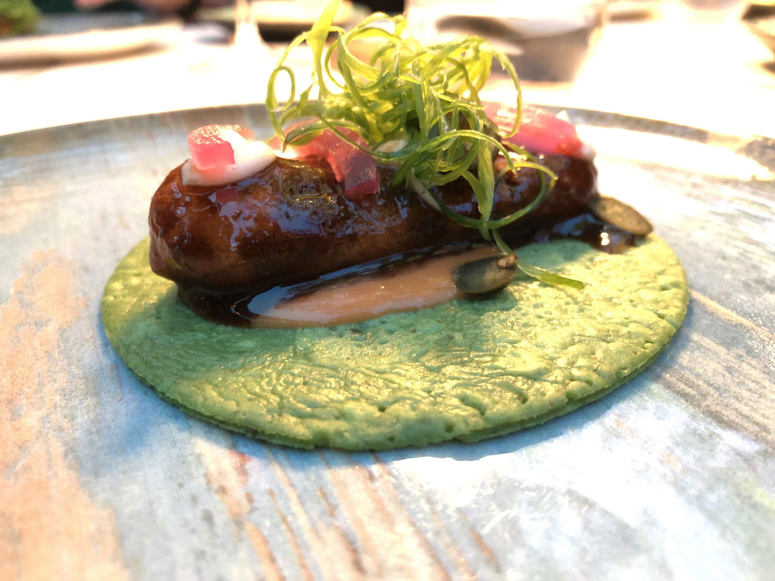 Increíble parpatana de atún con mousse de jalapeño y tierra cítrica, para mí el mejor plato del menú.