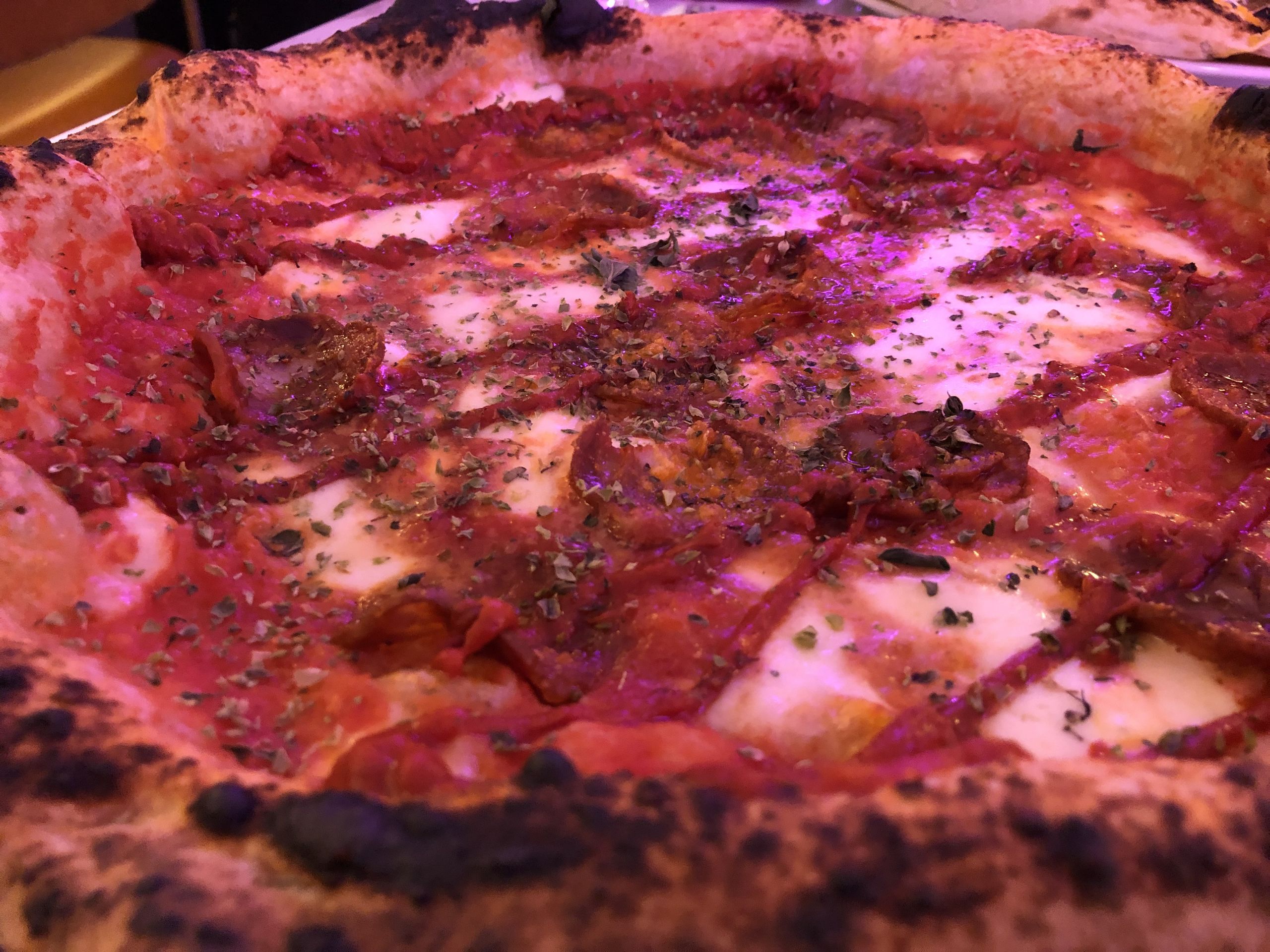 Lo que no encuentras en la carta es pasta así que no te cortes y dale sin pudor a la pizza. Para los amantes del picante como es un servidor probamos la pizza you turn me on (13,5€), con salame picante, salsa picante de nduja, mozzarella fior di latte, salsa de tomate San Marzano, orégano y mejorana fresca. Pica, pero no mucho, no os asustéis.
