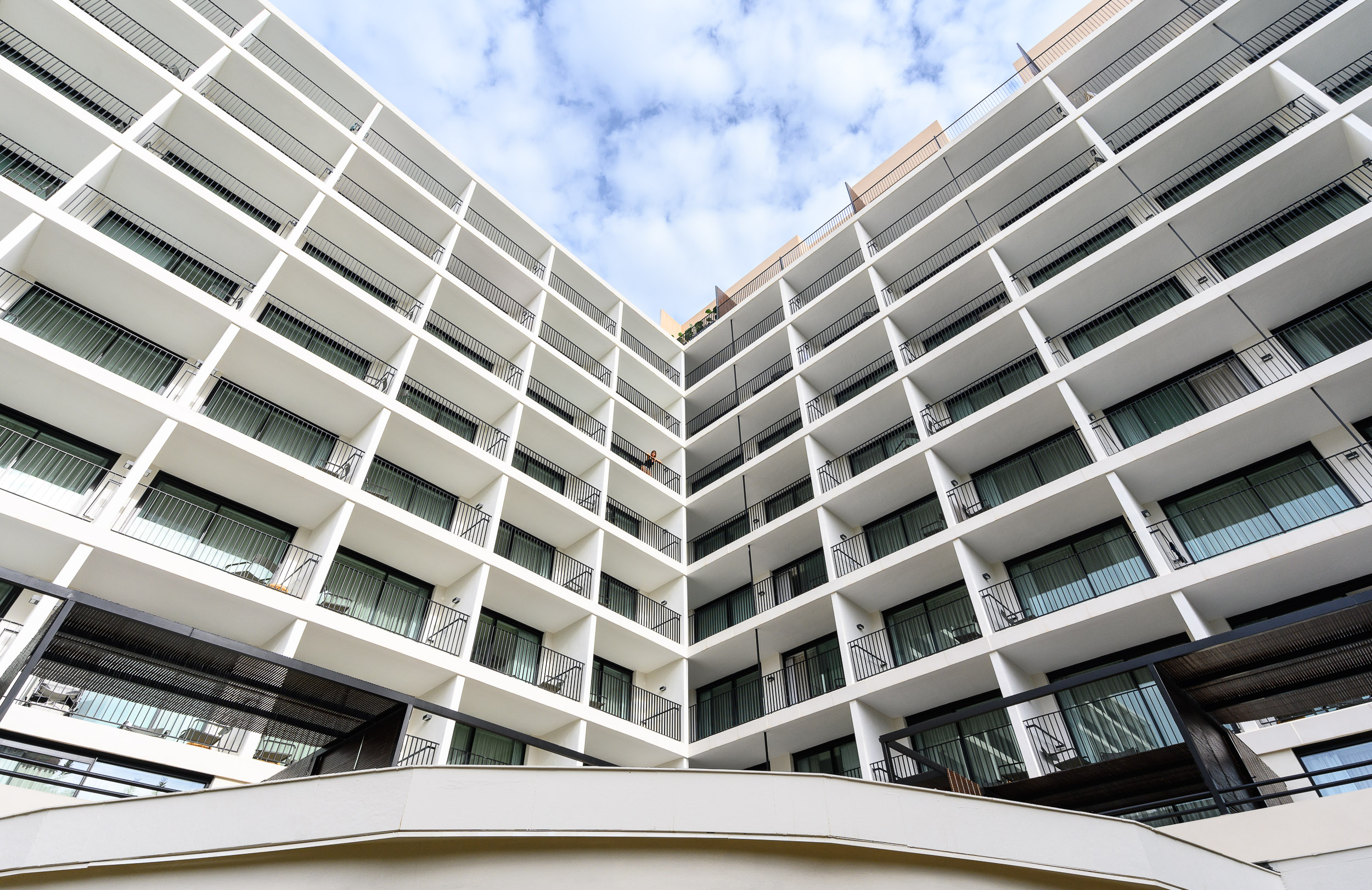 Una vista de las fachadas interiores de Hotel Mercure Benidorm.