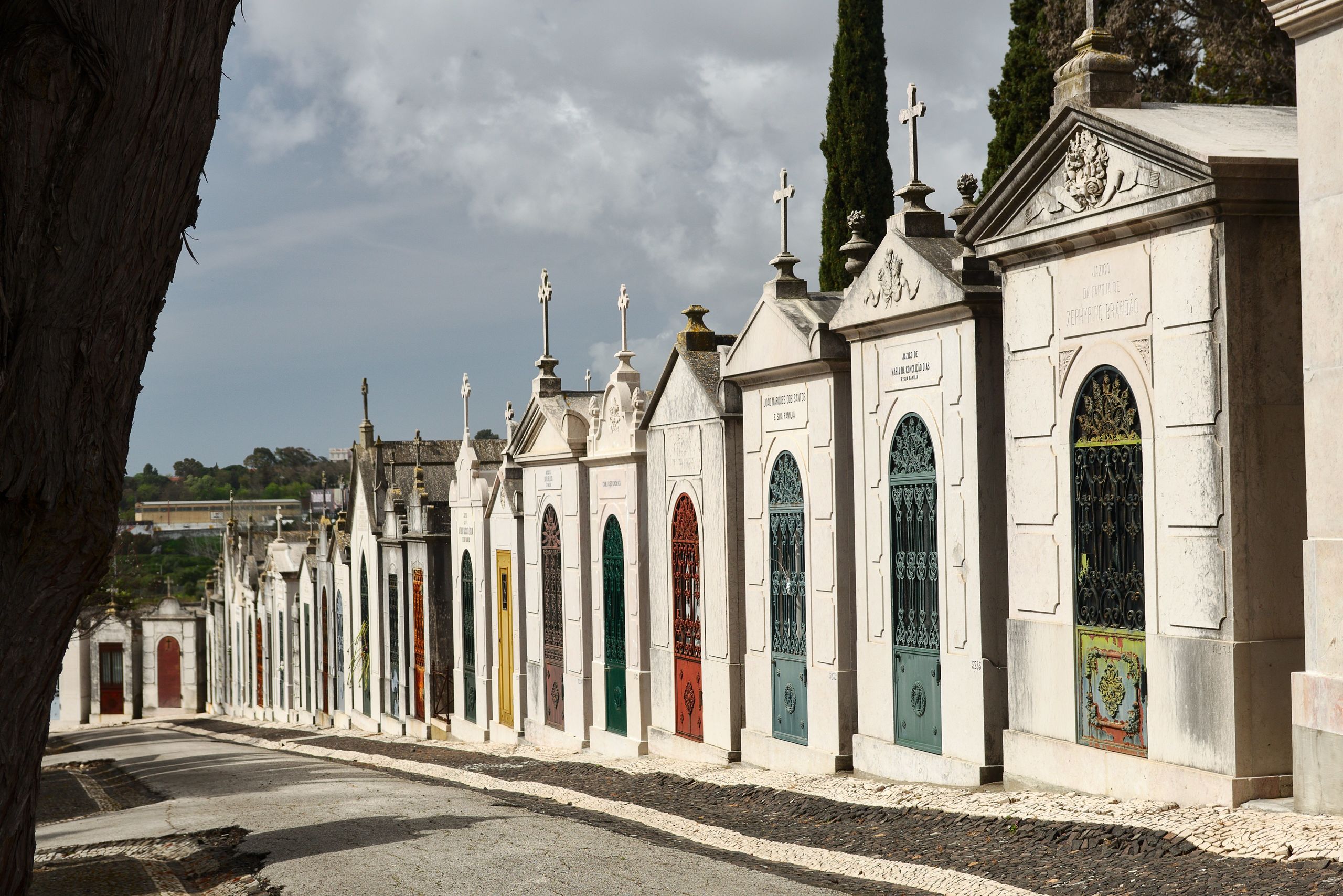 Se trata del lugar de enterramiento de famosas personalidades portuguesas, principalmente actores, escritores, pintores, presentadores de programas de televisión. Su inusual nombre proviene del barrio que se halla más cercano a este campo santo, Prazeres, que significa placeres. El cementerio se creó en 1833, tras una epidemia de cólera que asoló Lisboa y diezmó la ciudad.