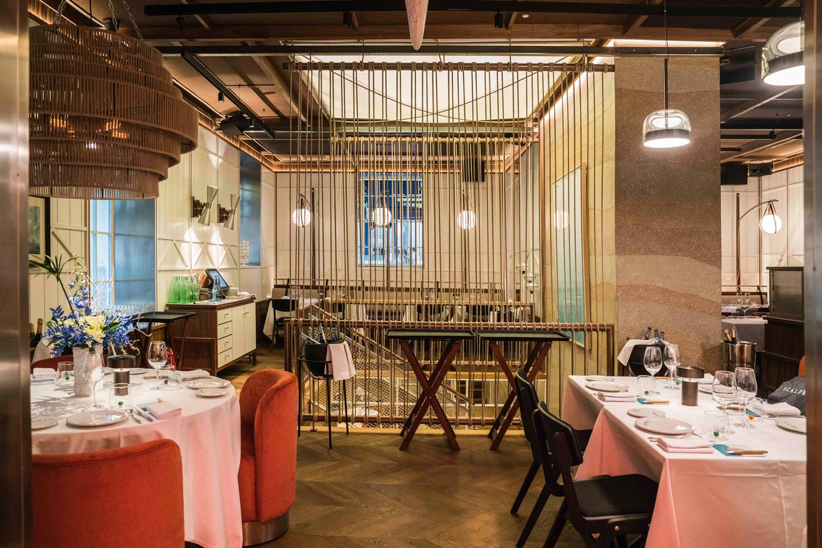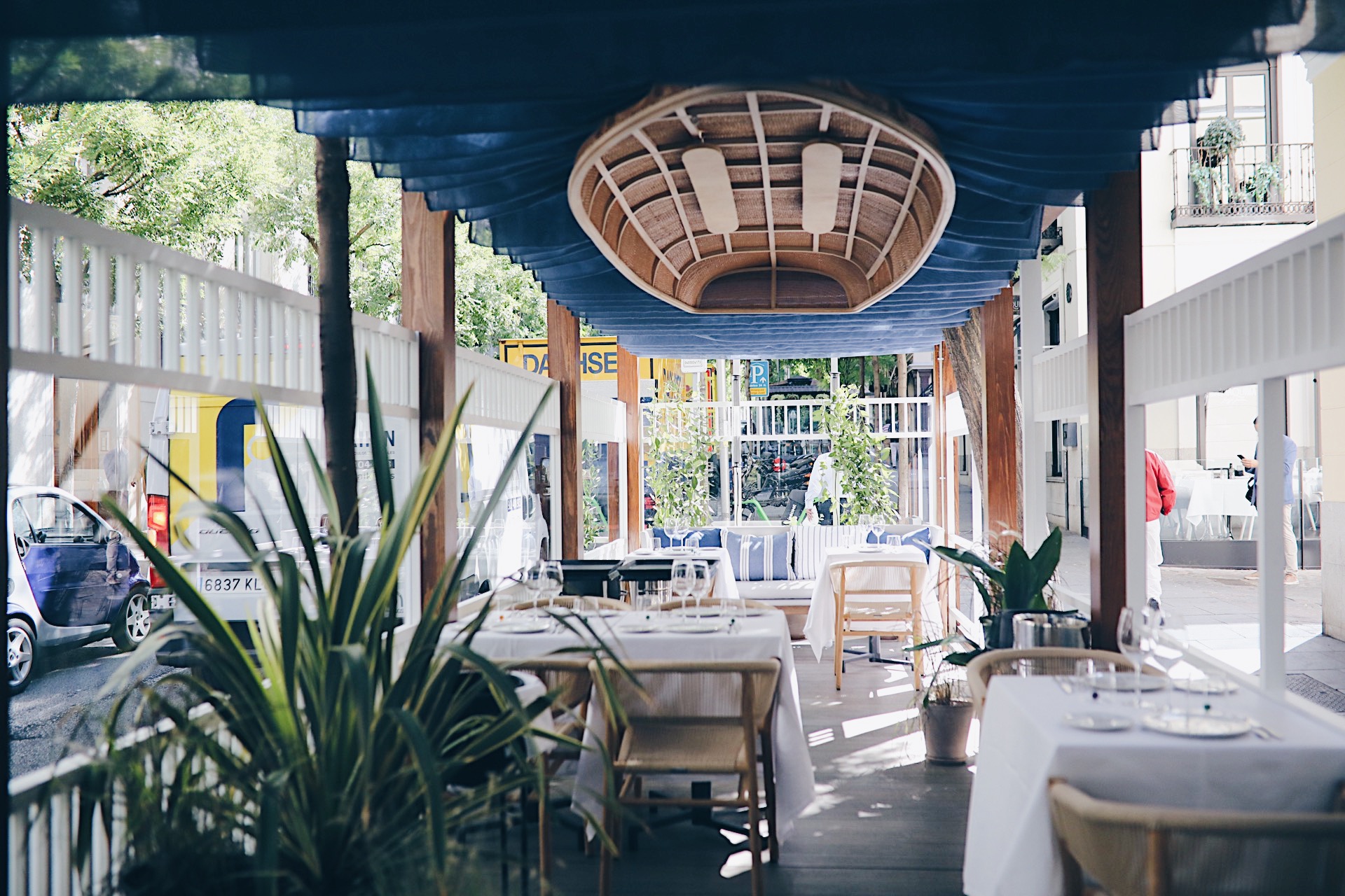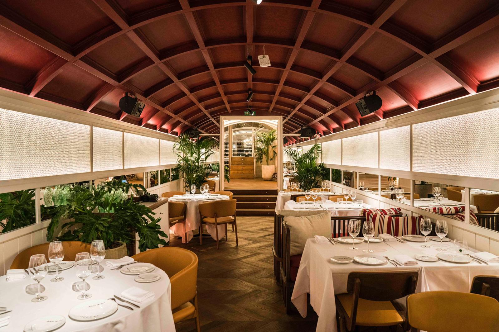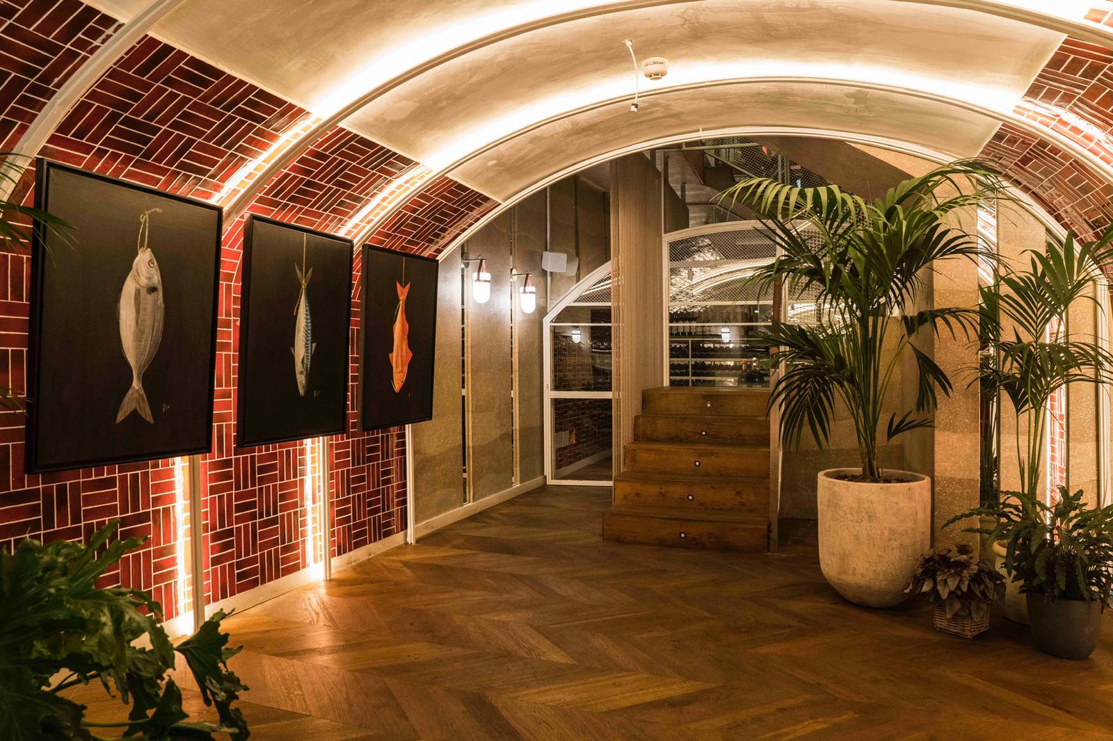 El diseño e interiorismo de este majestuoso local esta firmado por Oscar Engroba que ha conseguido, a través de tonalidades agua, neones y detalles marineros, traer el espíritu de la costa a Madrid
