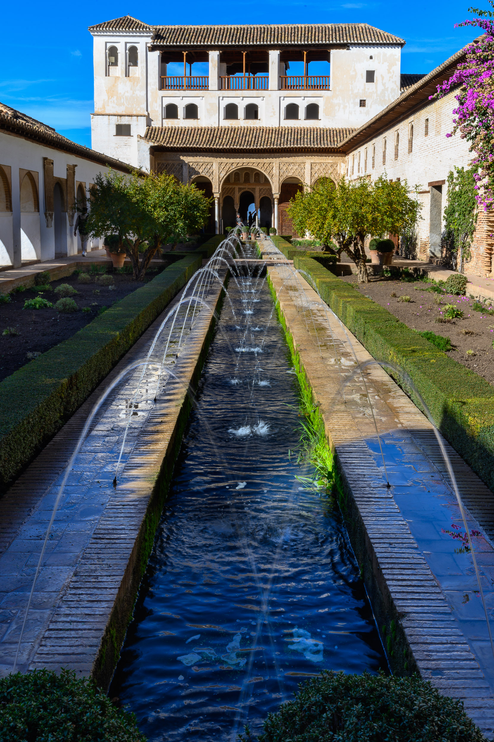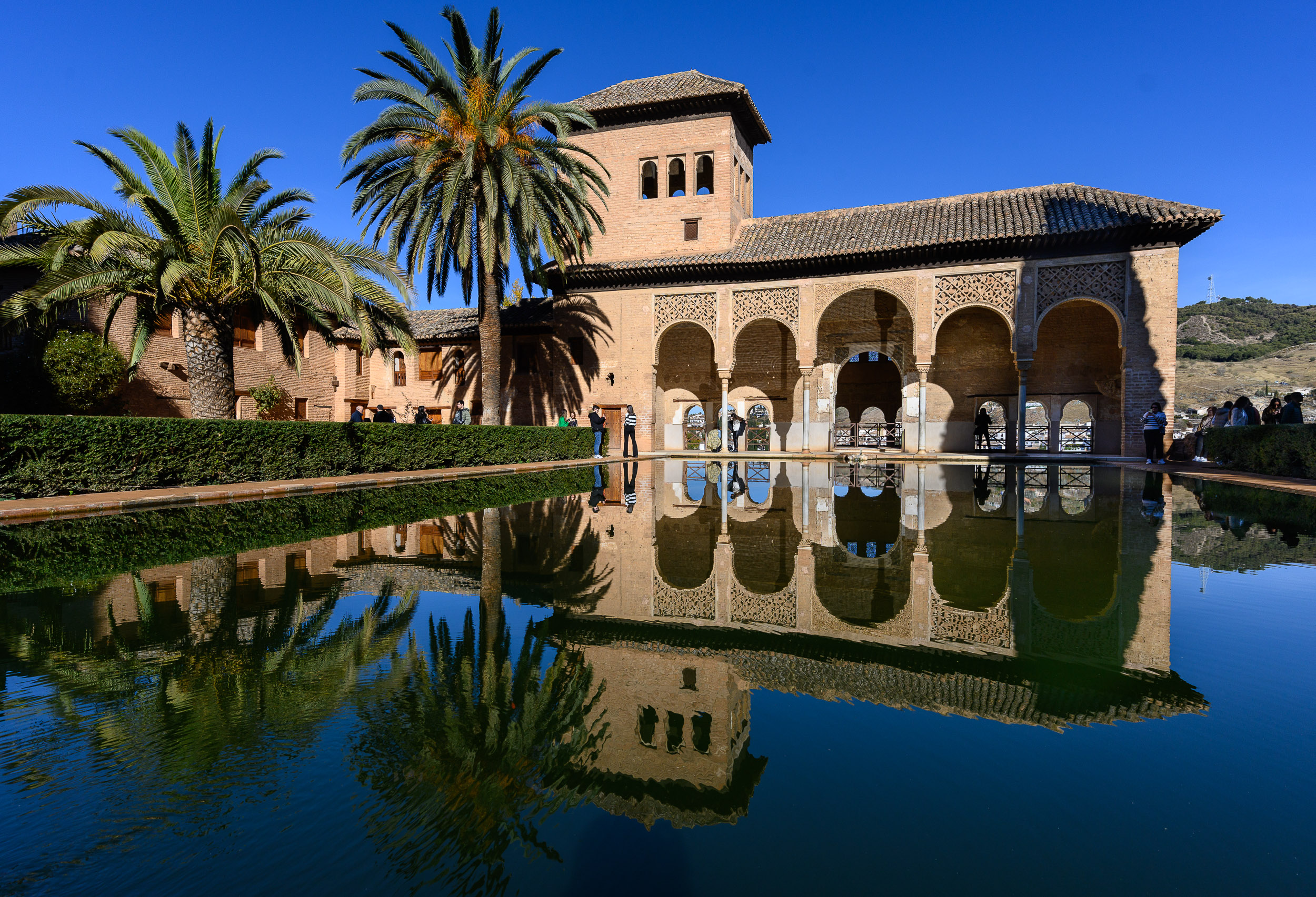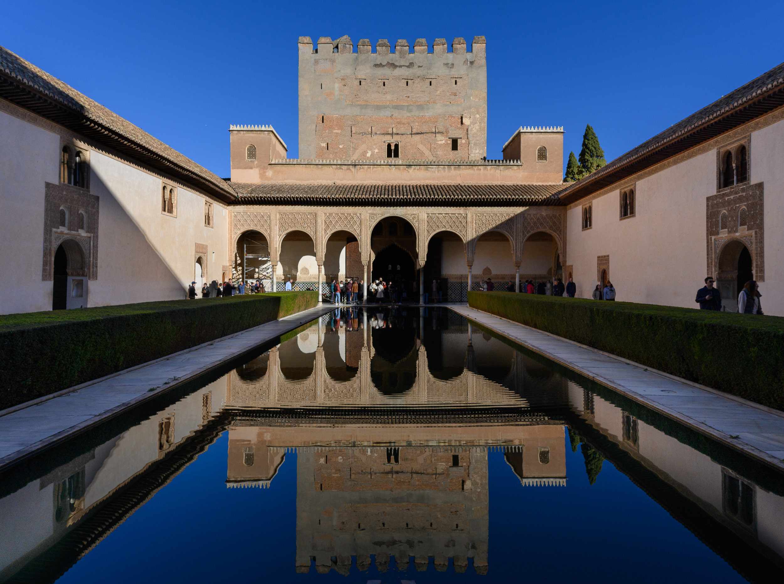 El Patio de Comares o de los Arrayanes, con su estanque y el hermoso efecto del reflejo en el agua.