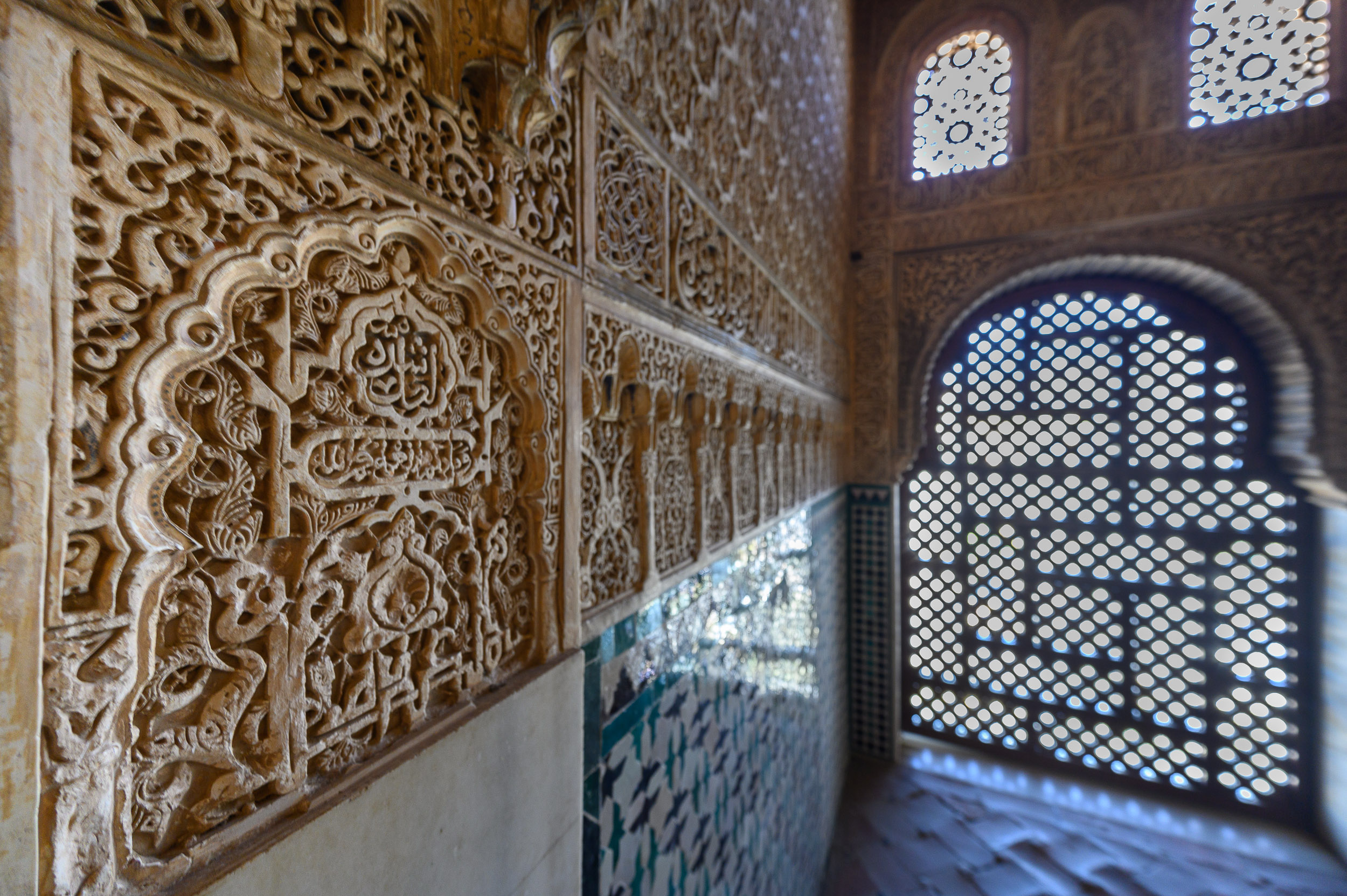 Un detalle de la espectacular decoración de las paredes del Salón de Embajadores.