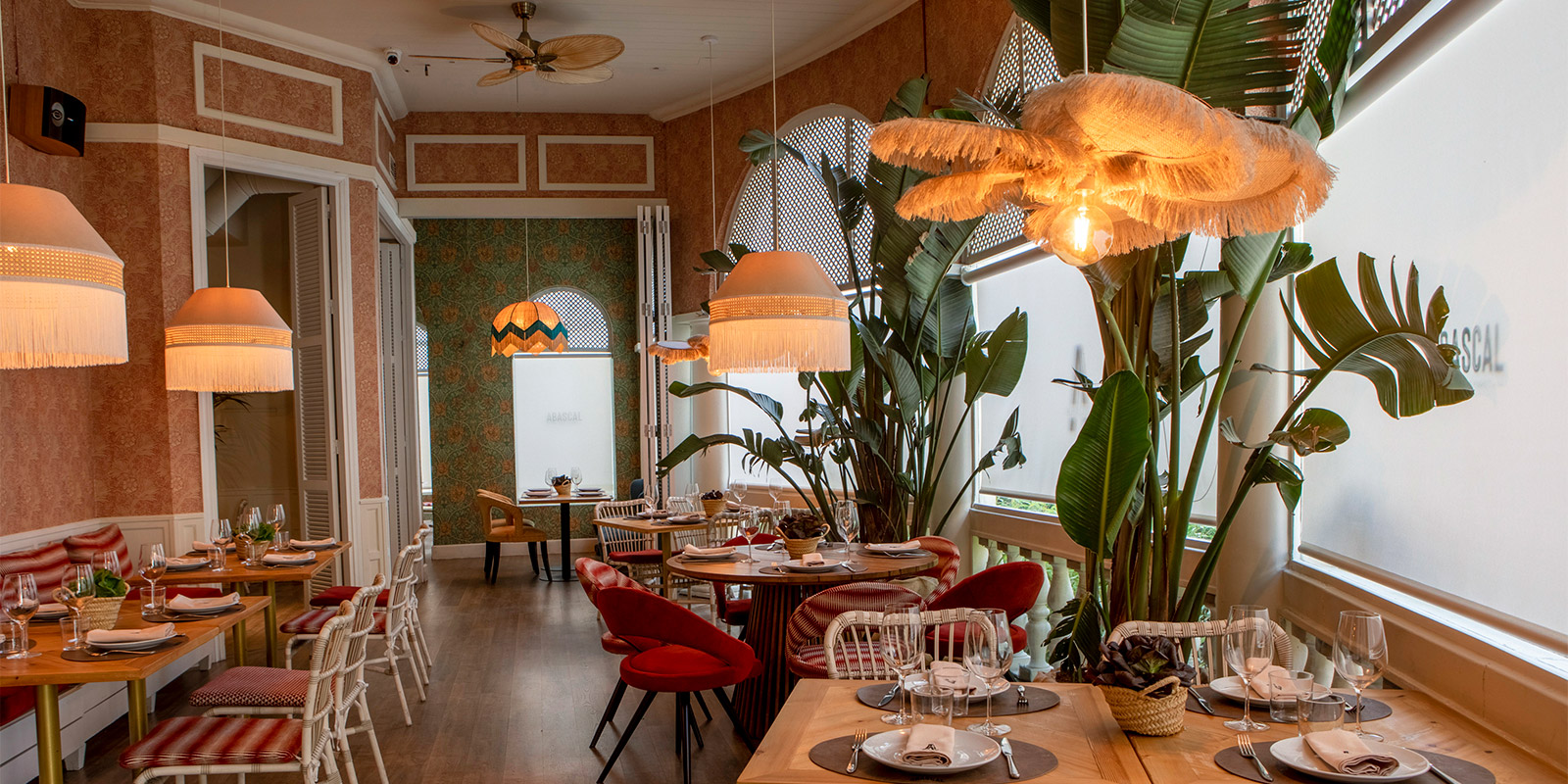 Papeles pintados, butacas tapizadas y mucha vegetación. Todo es poco para que en el restaurante Abascal disfrutes de una agradable velada.