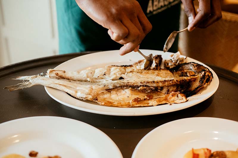 Los pescados también cobran protagonismo por su frescura y calidad ya que se eligen a diario, se preparan a la brasa y terminan delante del comensal.