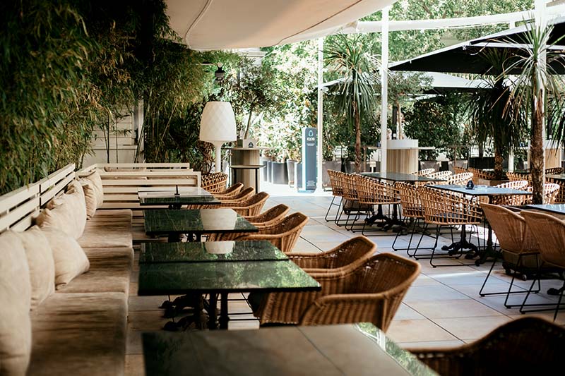 La vegetación que llena el restaurante y la terraza de Abascal te llevará a un oasis en el centro de Madrid.