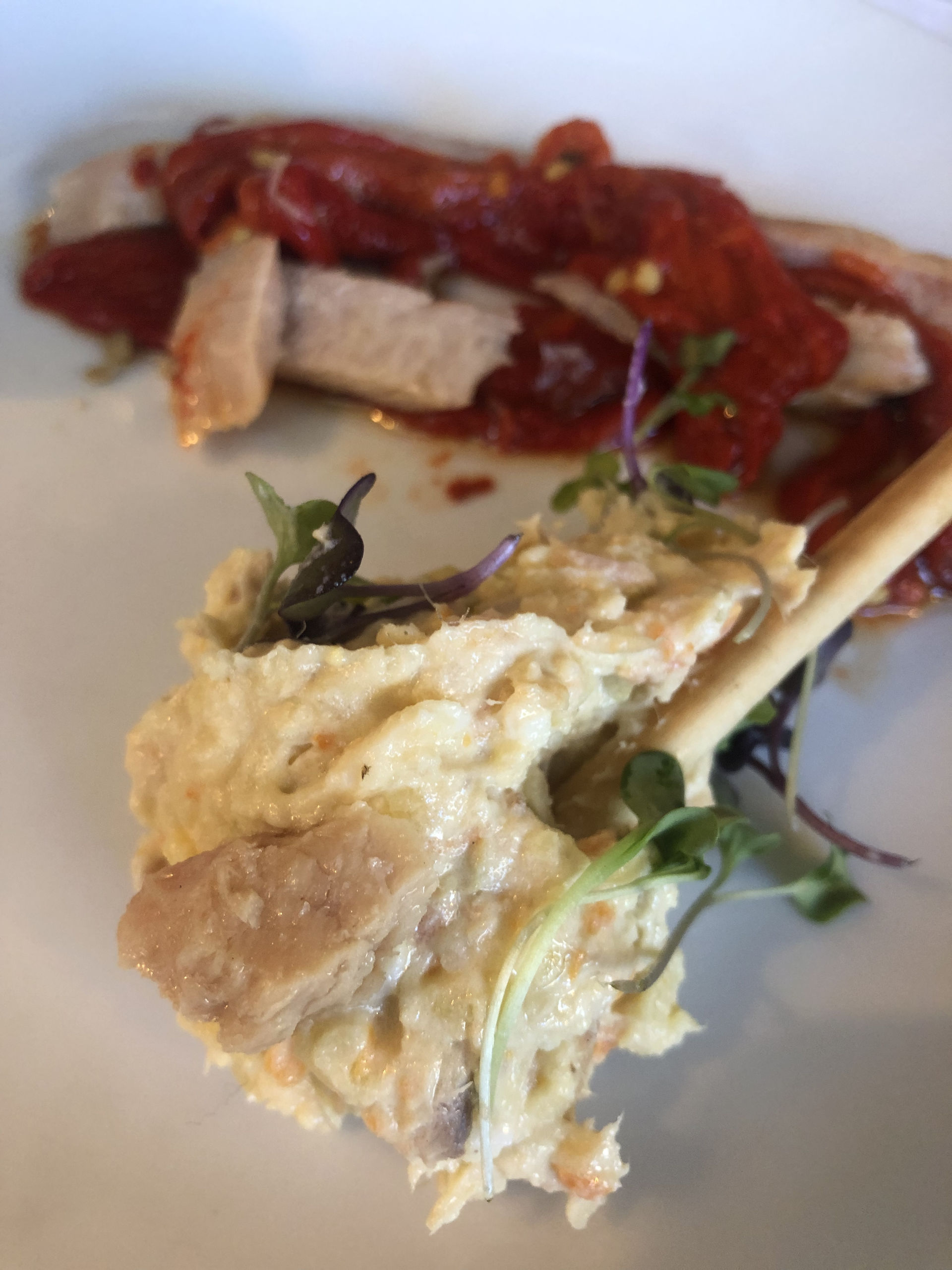 Pimientos de cristal a la brasa con ventresca y ensaladilla rusa con ventresca de atún.