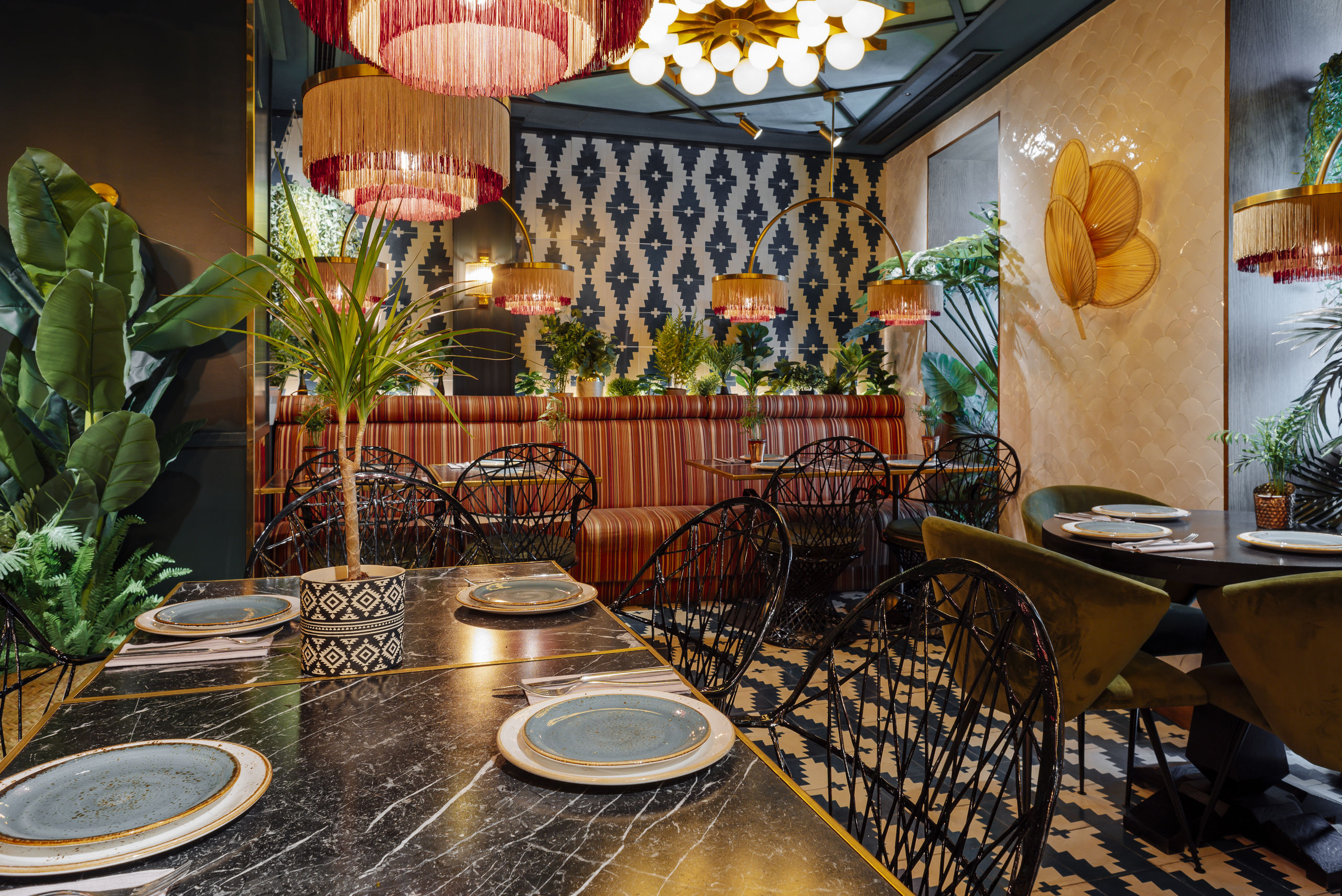 En Bangalore no sólo te van a conquistar desde el estómago porque su decoración te va a enamorar. También es obra de Madrid in Love Studio y al ser considerada como la Ciudad Jardín de la India, la vegetación no podía faltar.