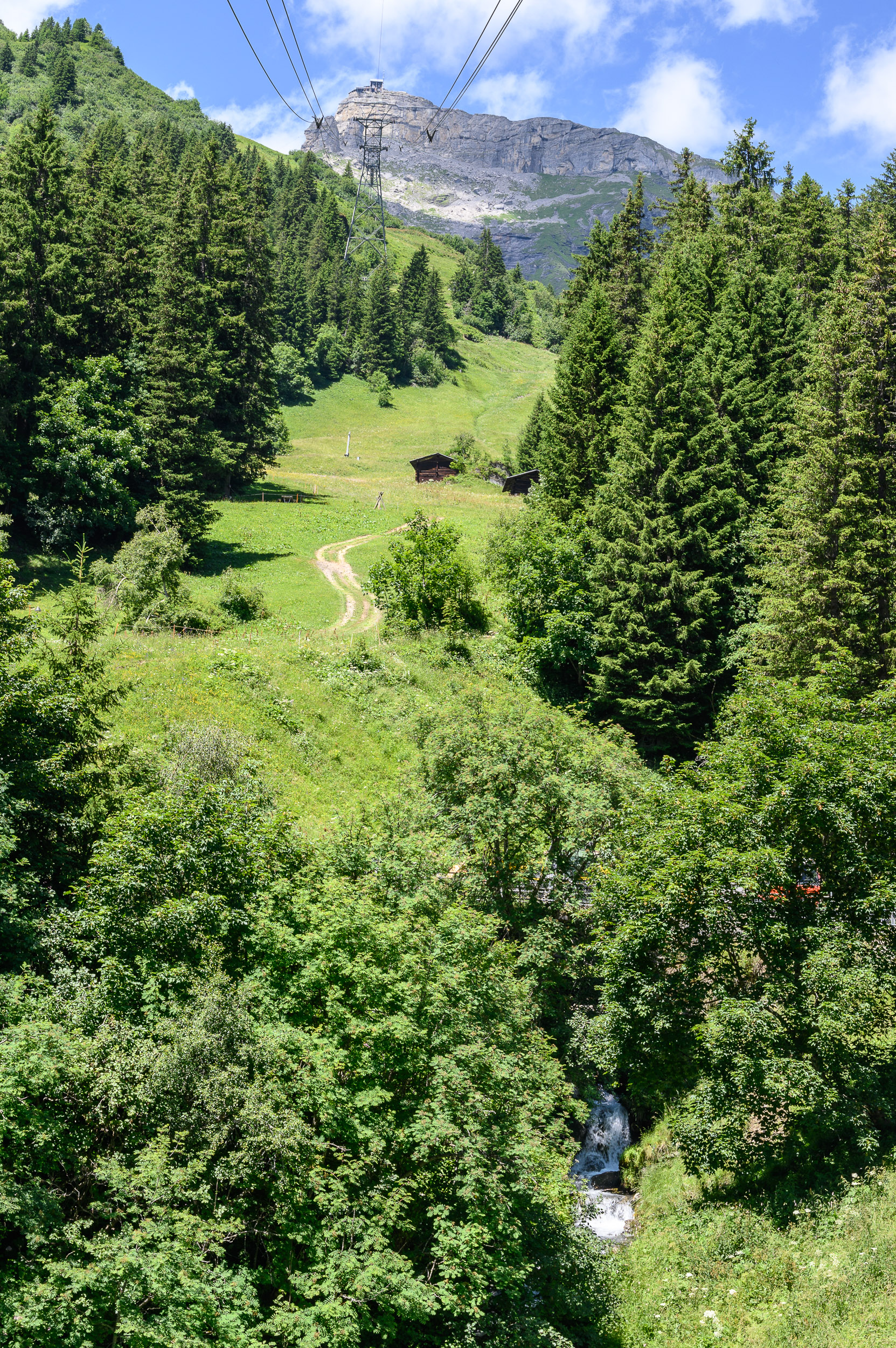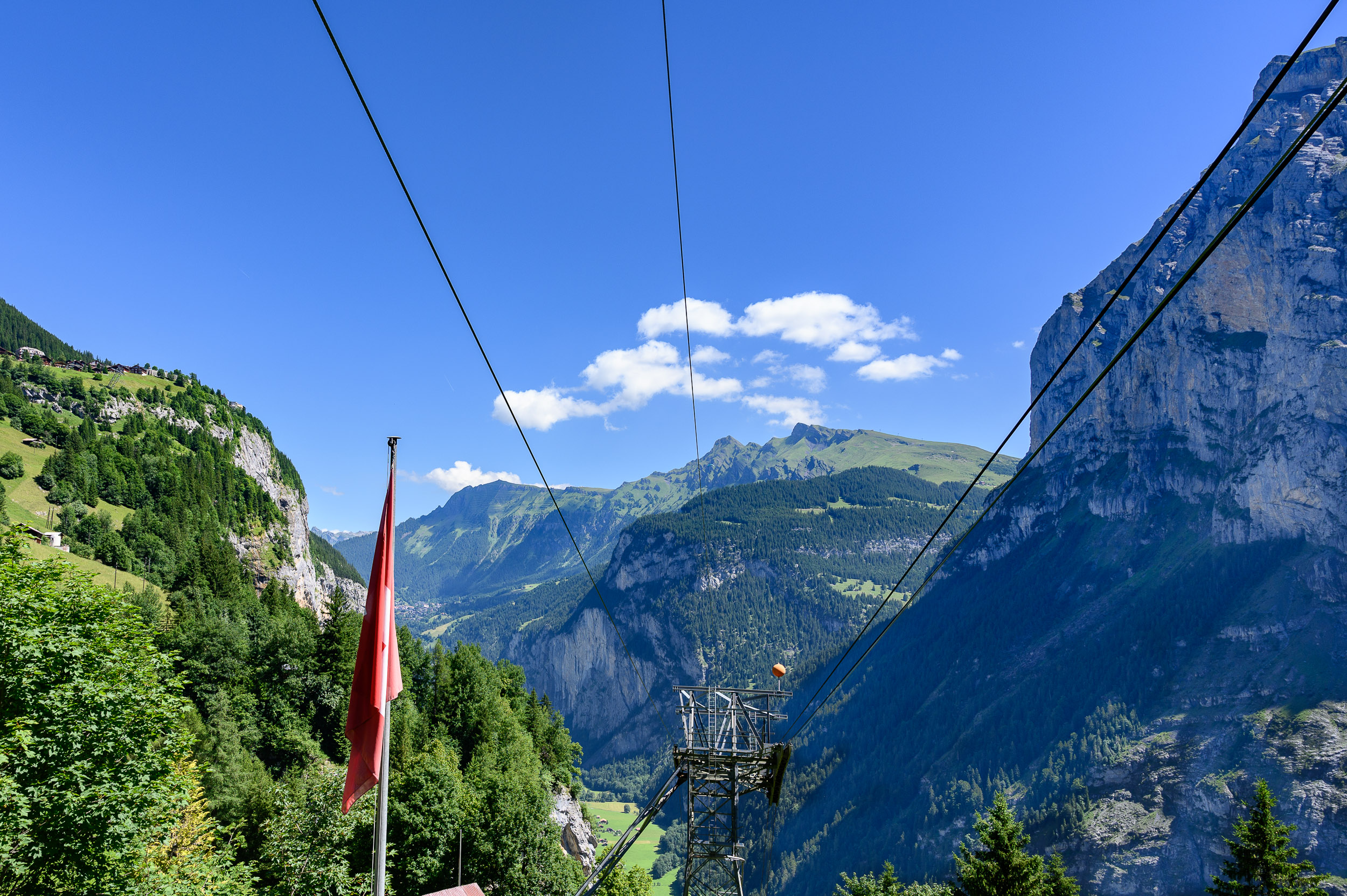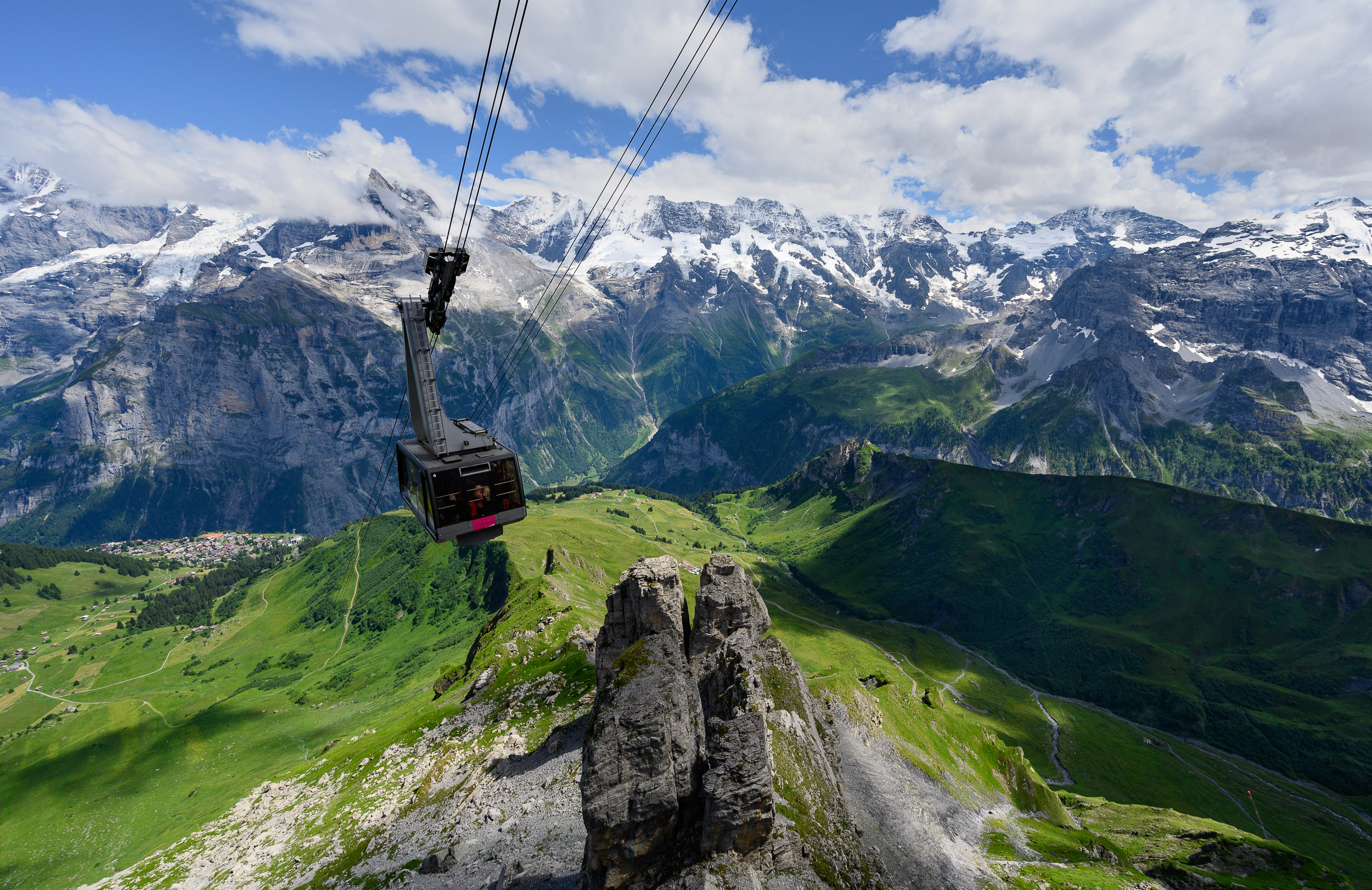 Parte del trayecto del teleférico hasta el Schilthorn, que se puede ver al fondo.