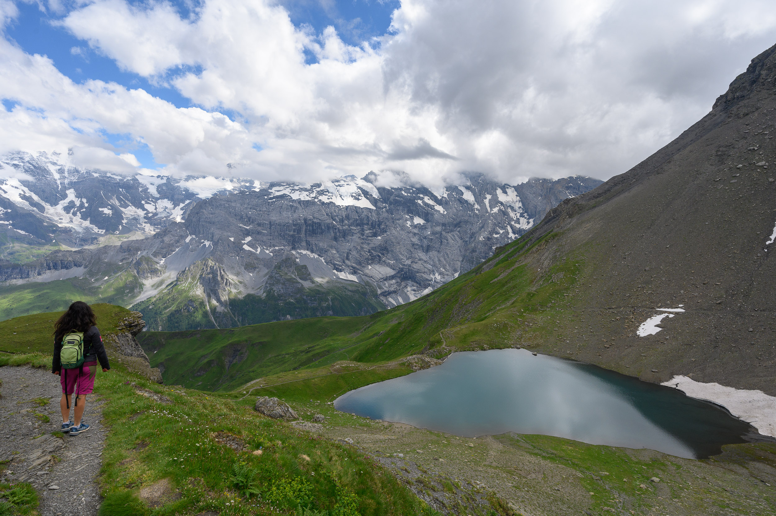 A sólo una pequeña caminata desde el teleférico de Schilthorn encontramos aluncinantes paisajes alpinos.