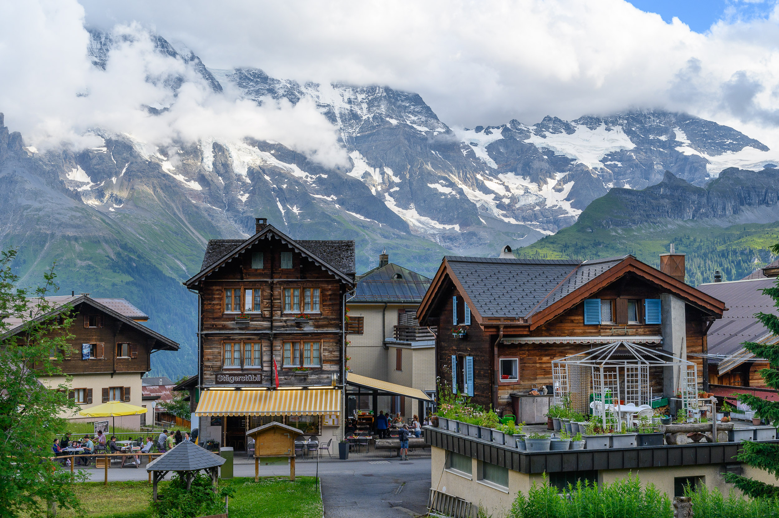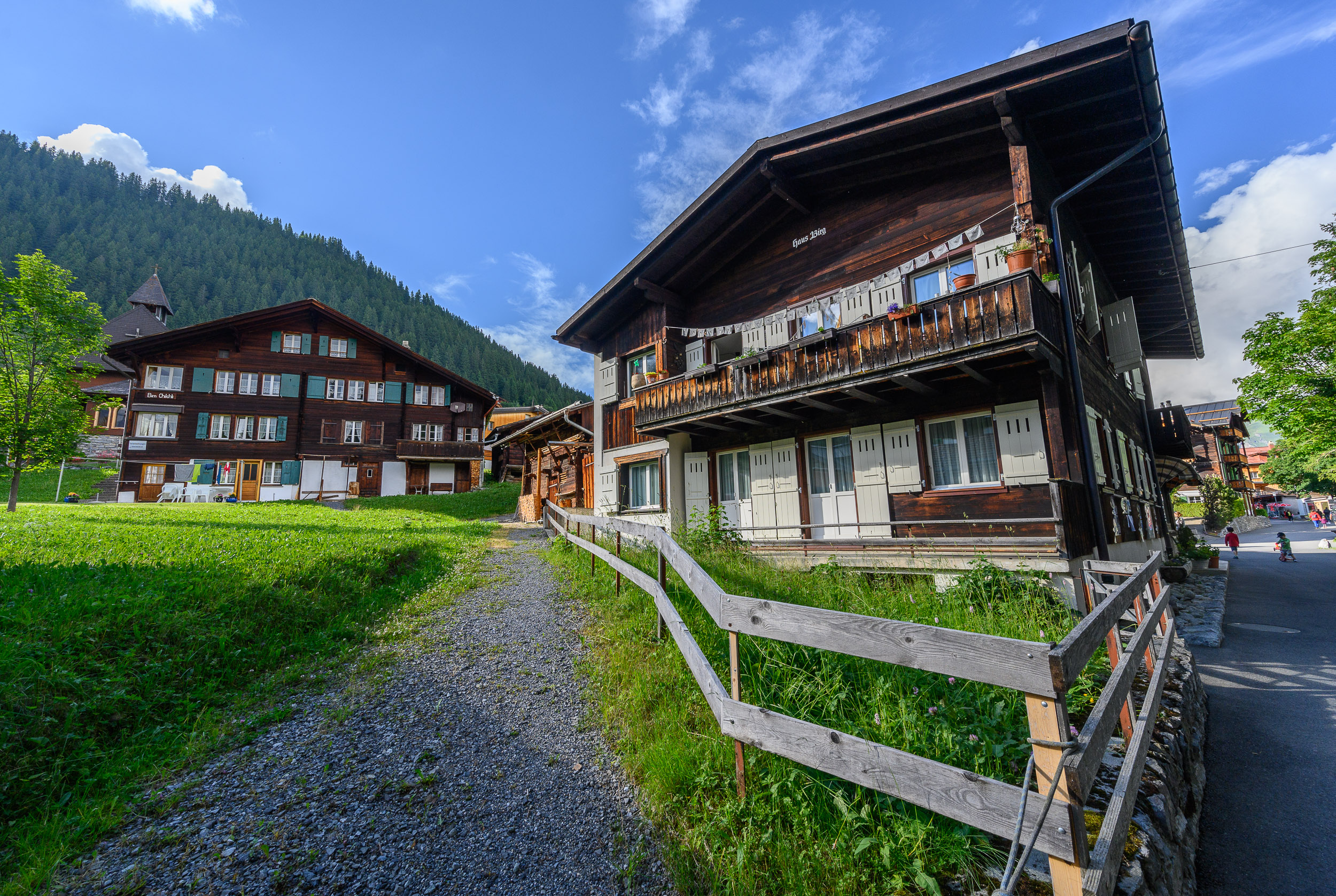 Prácticamente todos los edificios de la localidad de Mürren son típicos chalés suizos de madera.