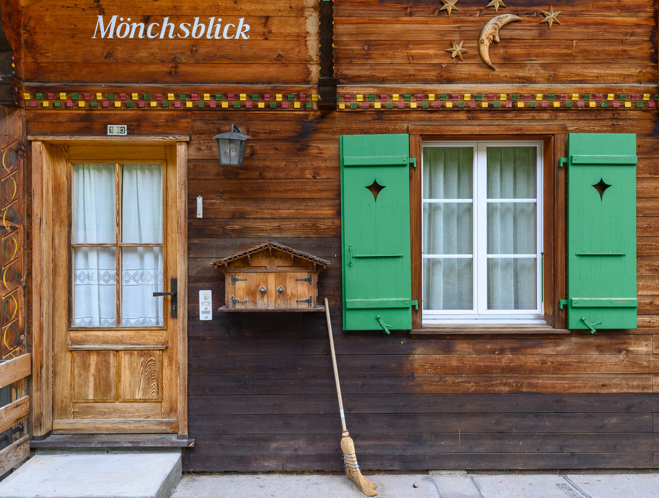 Detalle de la fachada de una de las encantadoras casas de Mürren.
